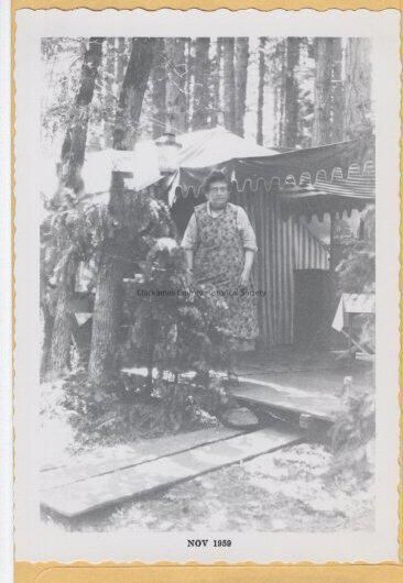 Gladstone Chautauqua Camp 1925 Lena Charman Gift of June Charman Forest Tent Camp Woman in Apron