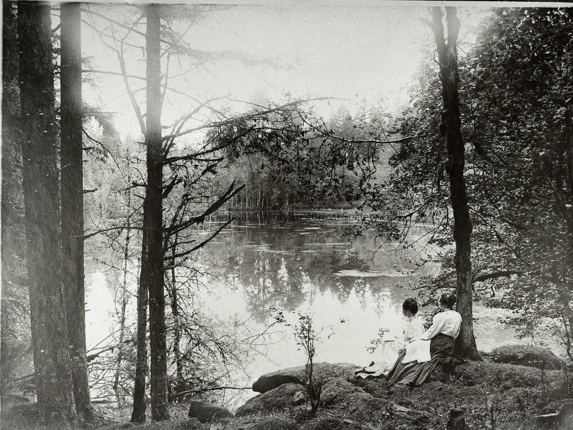 Mrs. Harvey Cross (against tree) and Mrs. William Hammond, her daughter (in front.)Made/Created