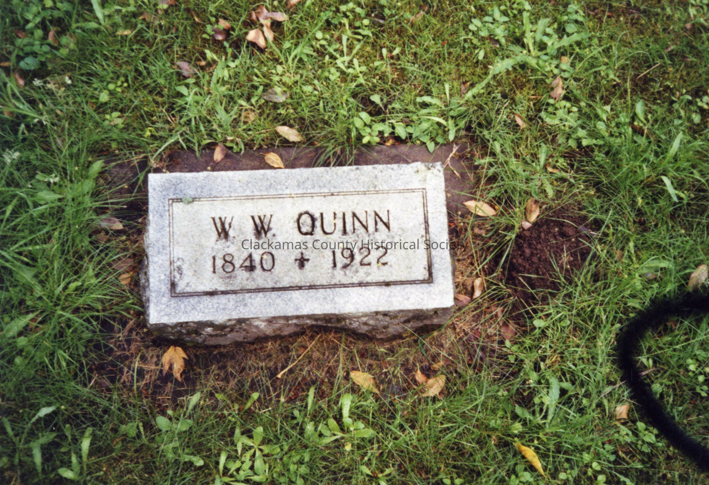 Gravestone of W. W. Quinn in Canemah, Oregon Cemetery Photo taken June 29th, 2002 Quinn Collection