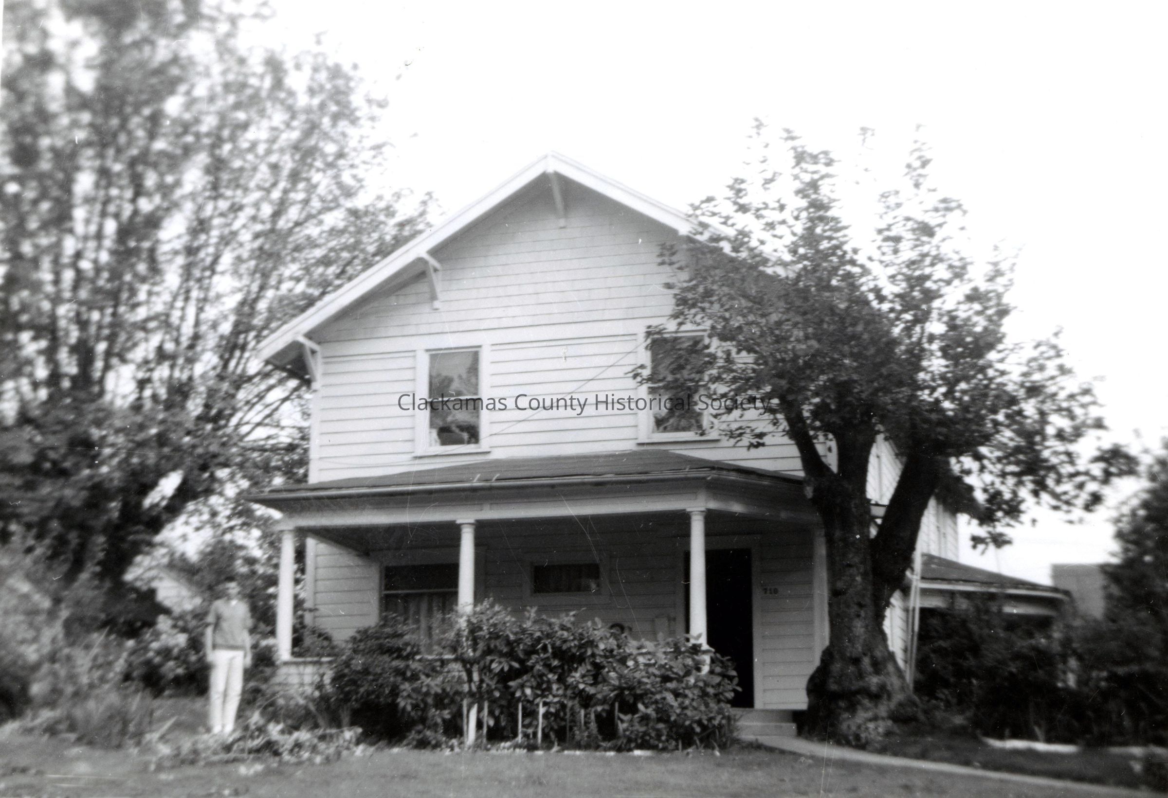 Green House after October 1962 Storm. Located at 710 Center Street, Oregon City. Photo states that Pat Green is out front.Made/Created