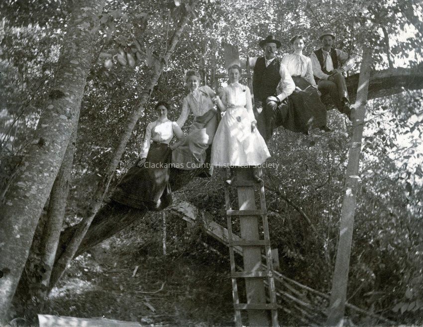 Group in Tree at Roethe's Landing on the Willamette River.Entry/Object ID