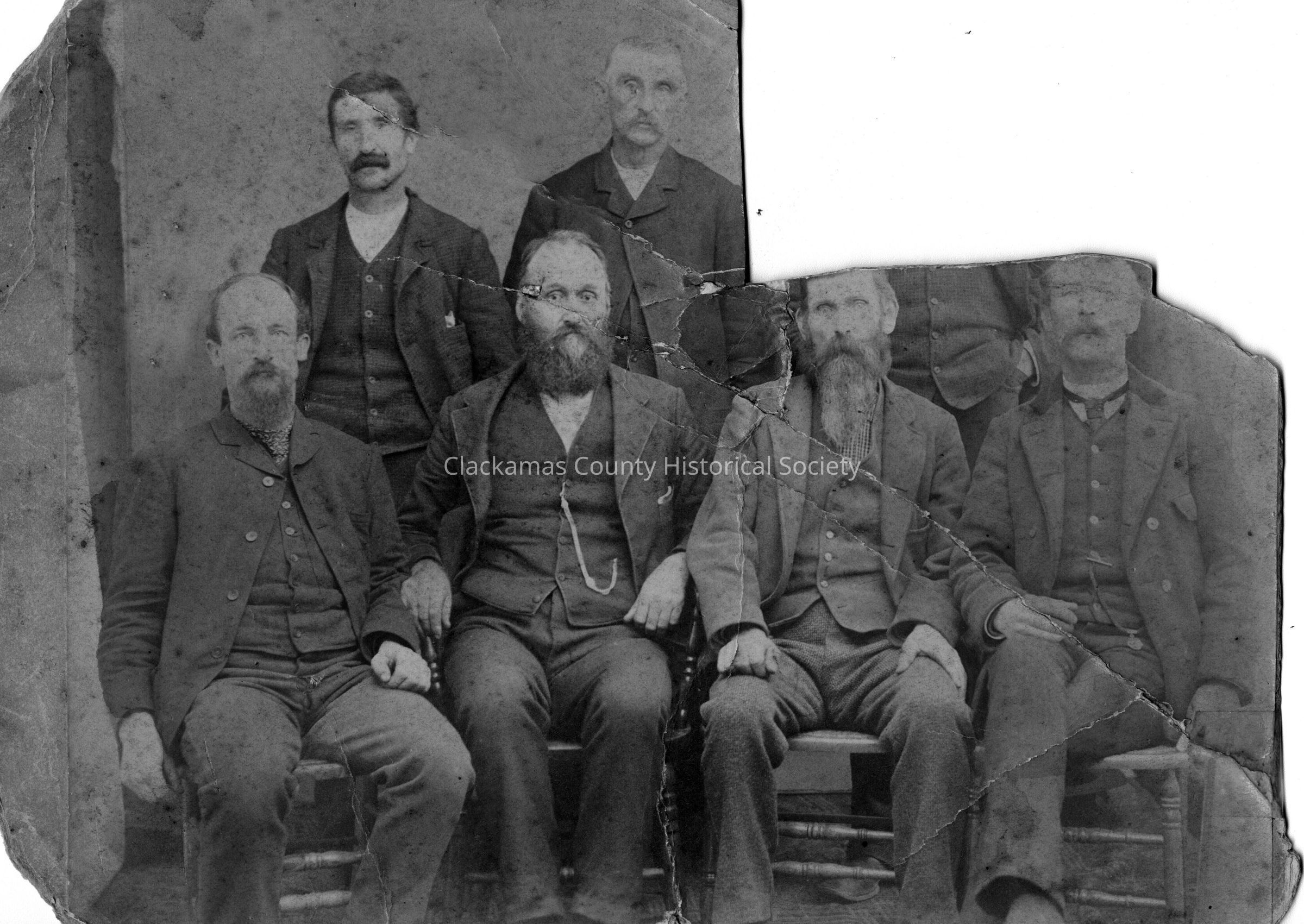 Group of Men. 1899, Oregon City, Oregon. The name Dr. Harry Lau is listed on the back of the photo, but none of the men are specifically identified. The names Foster and Tressing as well are listed on the envelope.Made/Created