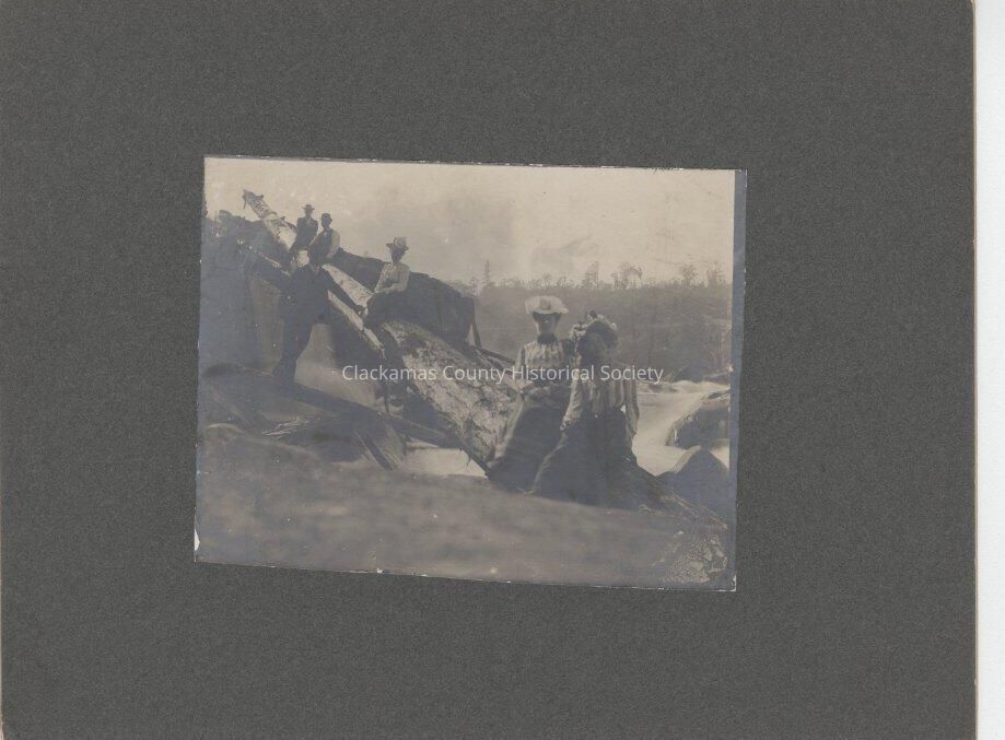 Group on Log at Willamette Falls Oregon City, Oregon - 1900 - 1902Entry/Object ID
