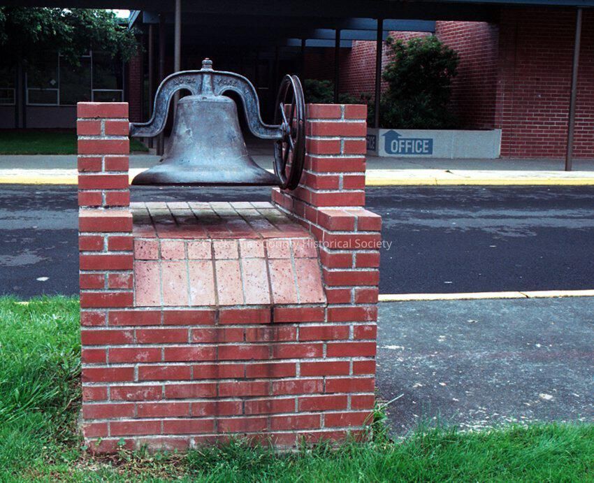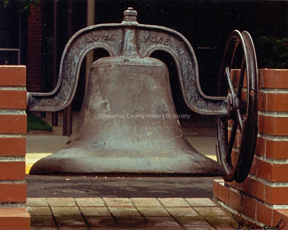 Happy Valley School Bell, view #1. Donated by Deardorff family, 1892.