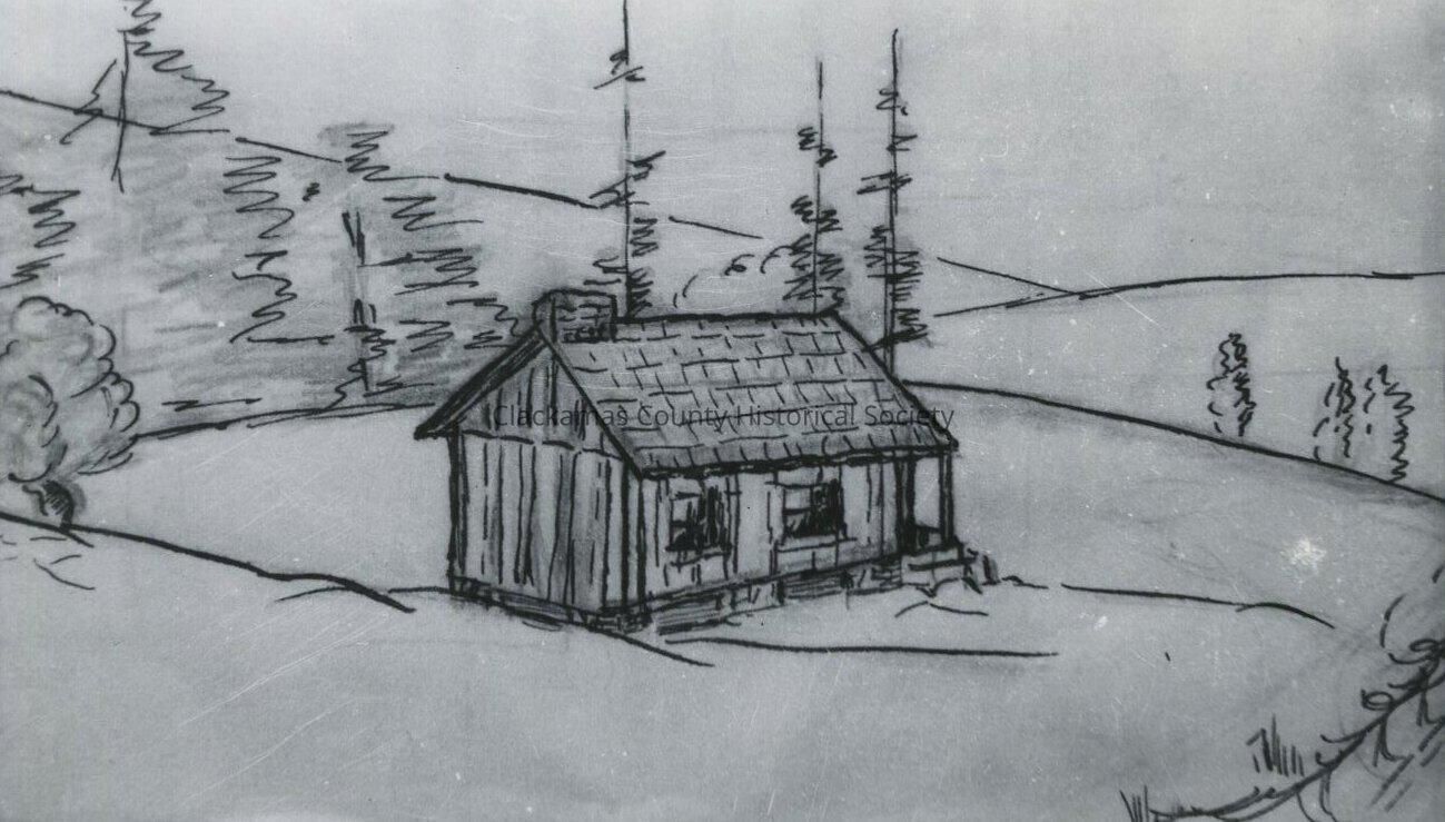 West Linn, Oregon Building Clackamas County Hazalia School Pencil Sketch gift of Harriet Munnick Stafford Road
