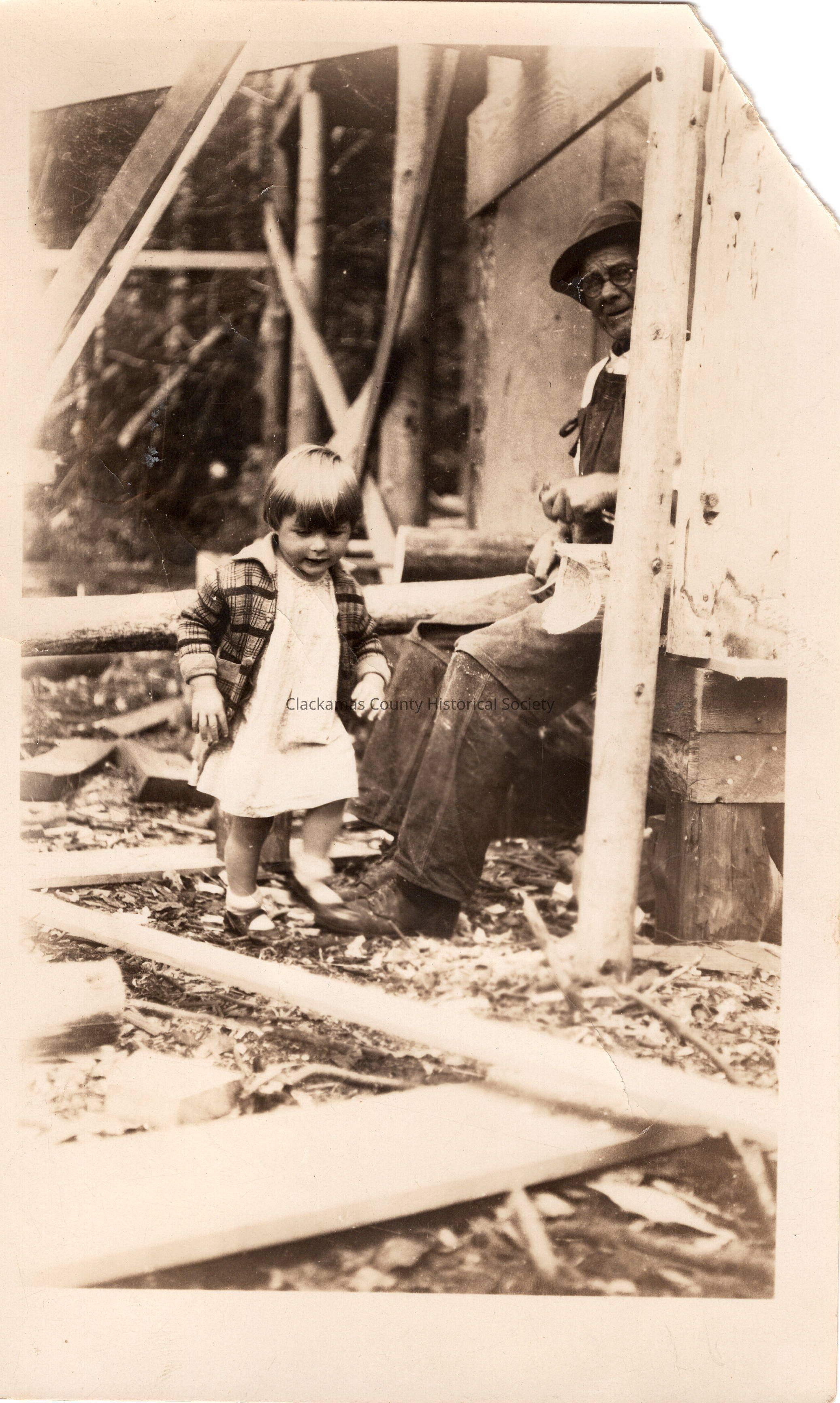 Granddad Hoss (father of Hal Hoss) and Laura May Hoss, outside at Taft Oregon.