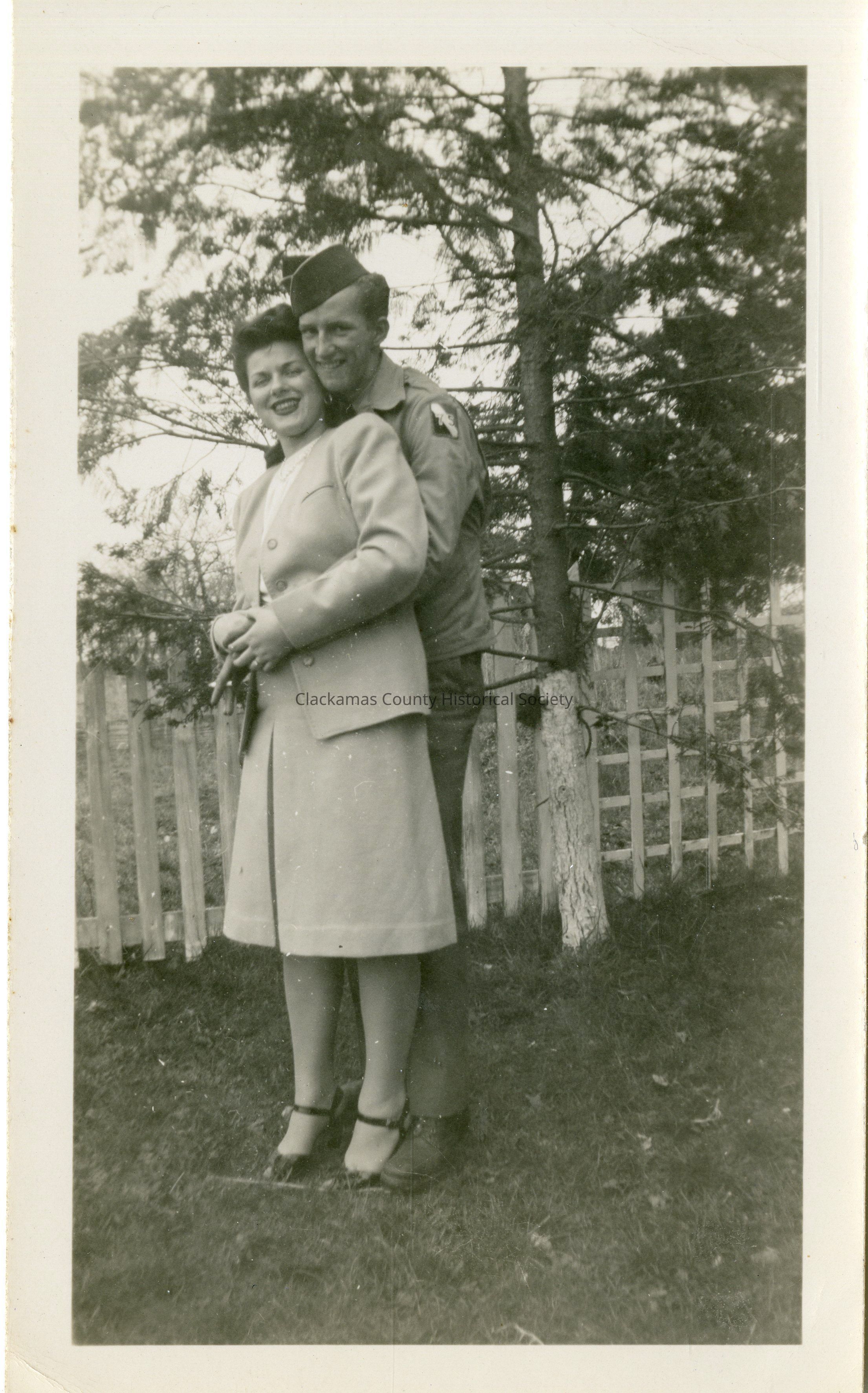 Laura Hoss and Bob Ross. Bob Ross in military uniform. Both standing outside in a yard.Other Names and Numbers