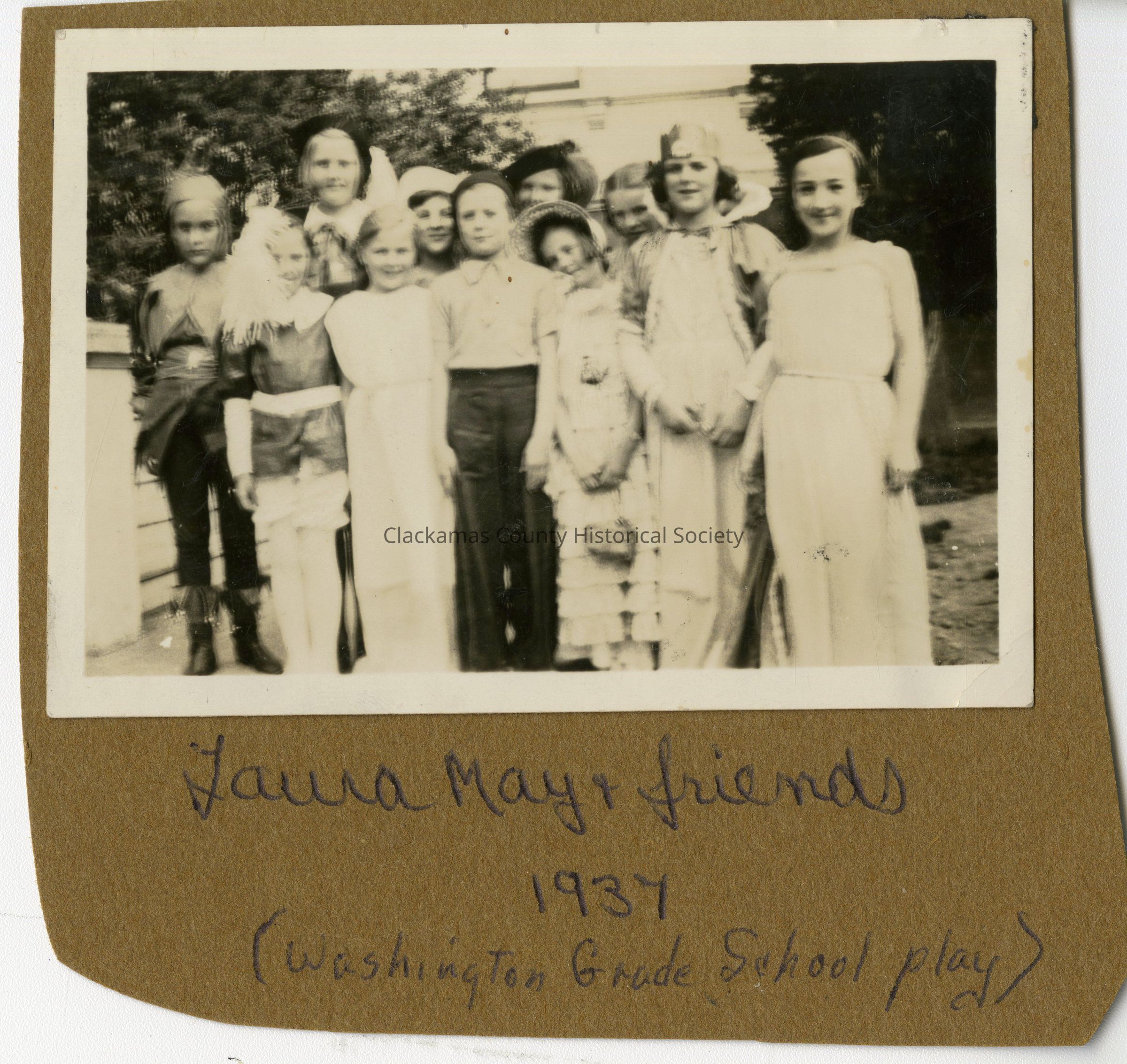 Laura May Hoss (2nd on right with crown) with co-actors at Washington Grade School play.Other Names and Numbers