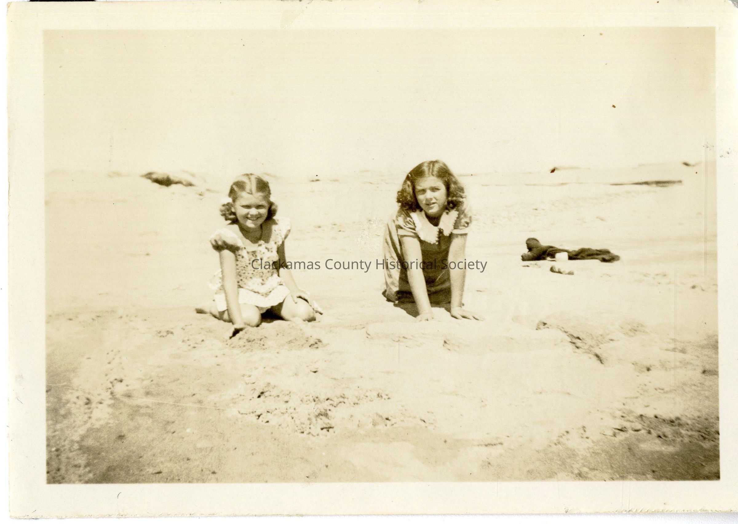 (r) Laura May Hoss with a friend (possibly Mary Kay) on the beach at Taft OregonOther Names and Numbers