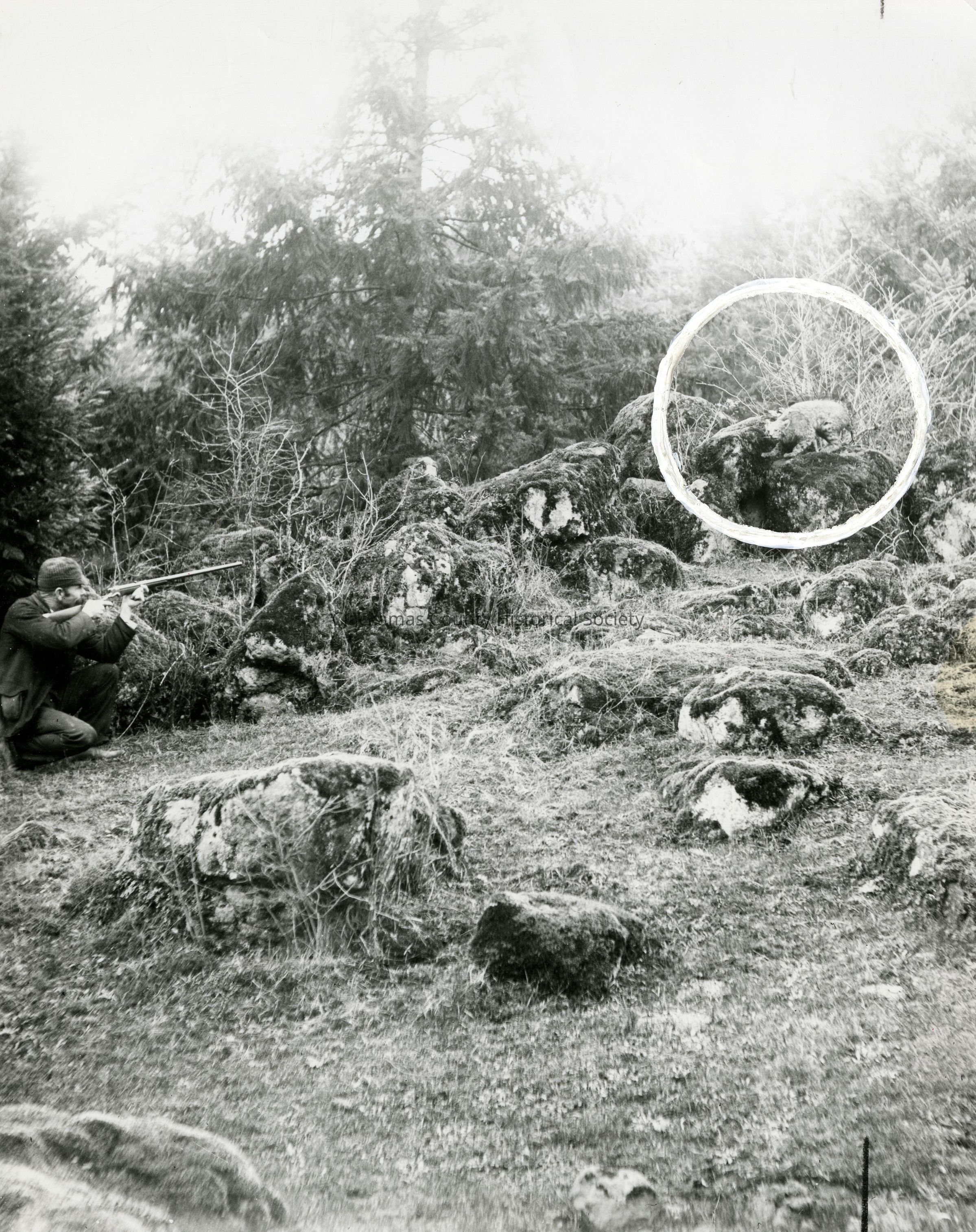 Hunter shooting at (stuffed) wild cat