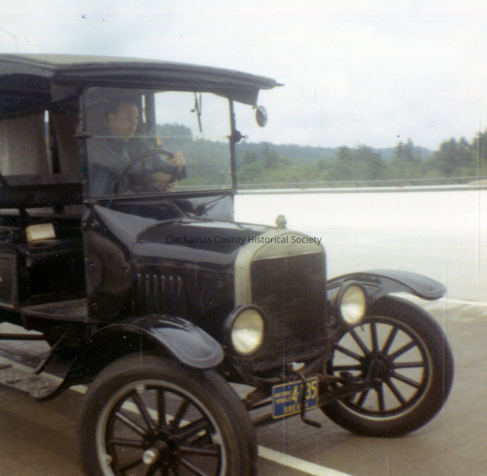Photograph of I-205 Bridge Dedication (11 views - view K) Antique car and driver on I-205 bridge