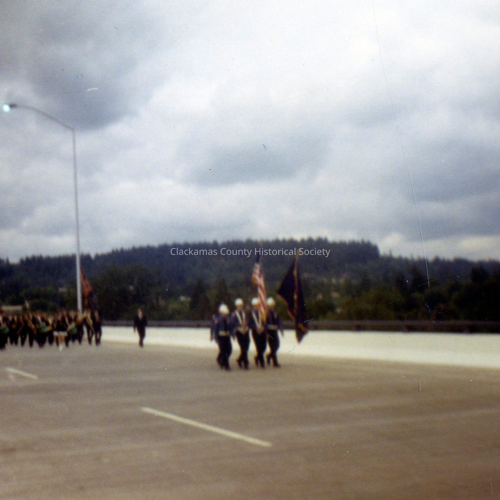 I-205 Bridge Dedication (11 views). D) Flag bearers on bridge.