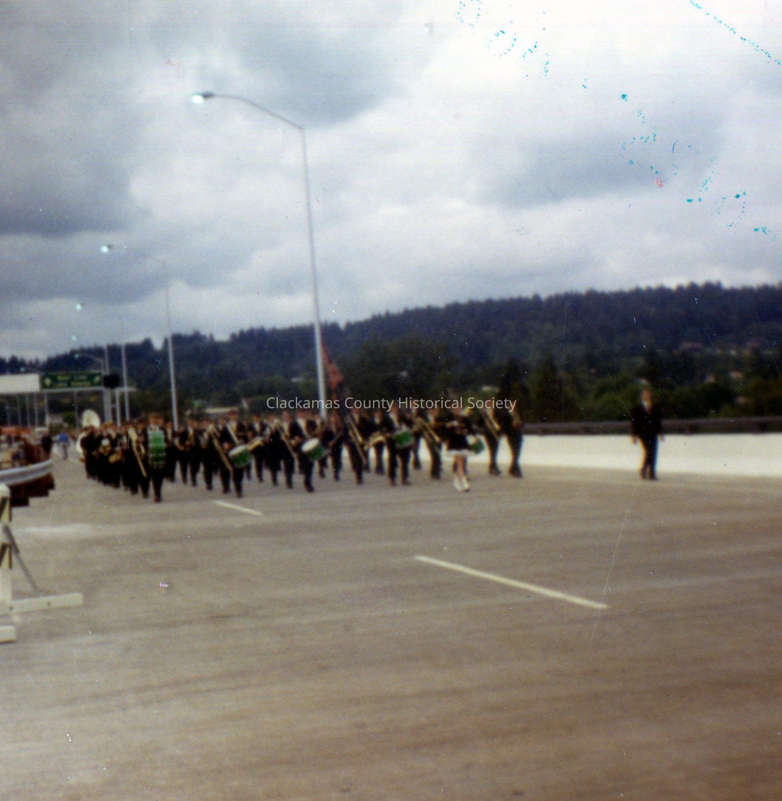 I-205 Bridge Dedication (11 views). C) Marching band on bridge.