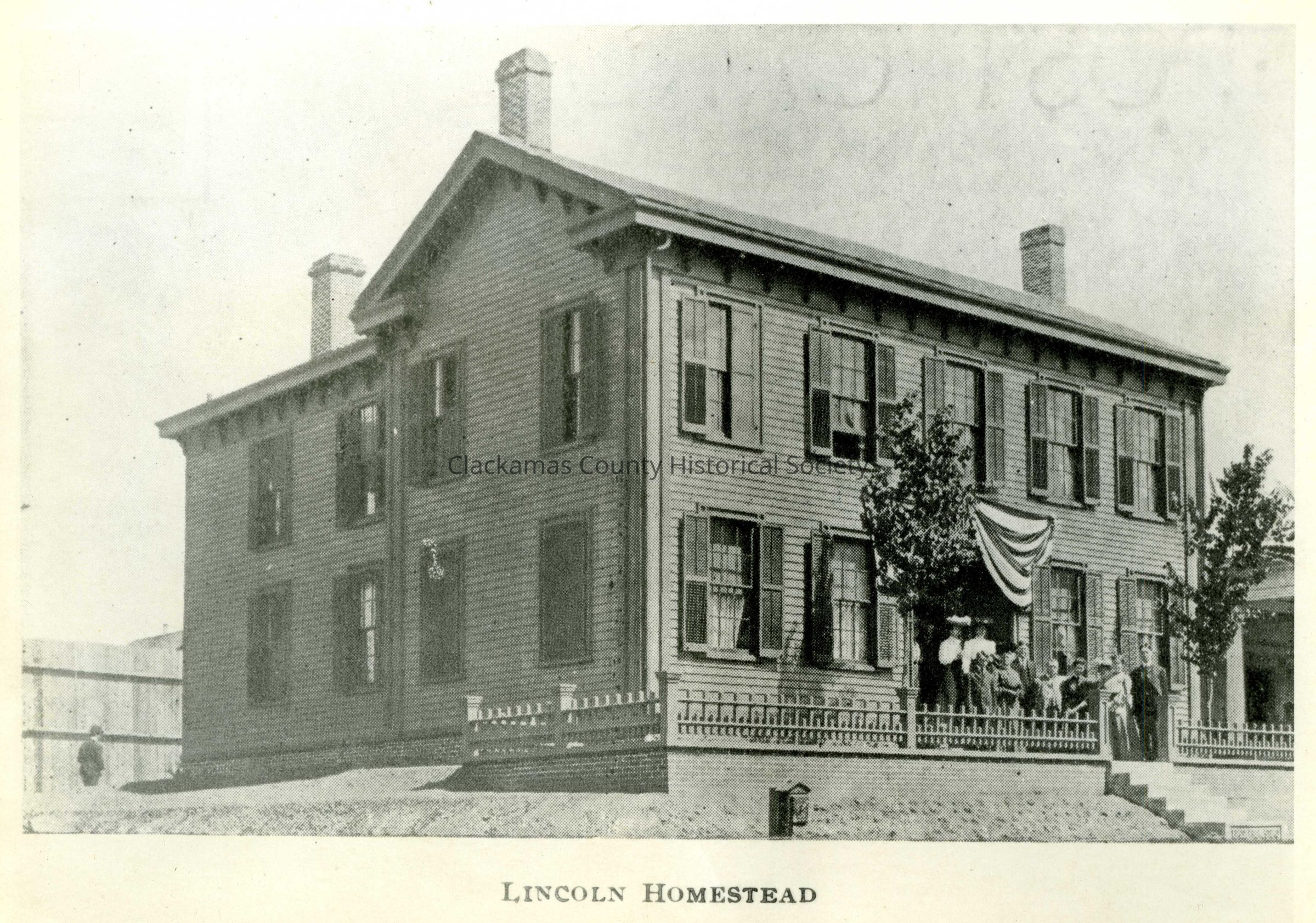 Illinois State Building at the Portland Lewis and Clark Exposition. The label under the photo states "Lincoln Homestead."Made/Created