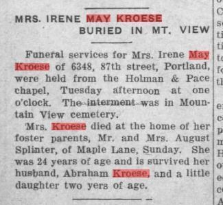 taken in front of Splinter farmstead - Maple Lane - Irene May Splinter married Abraham Kroese on September 7th, 1919. She passed from bronchial pneumonia on December 23, 1922. She left a daughter Alvina. JAH 10/2022Made/Created