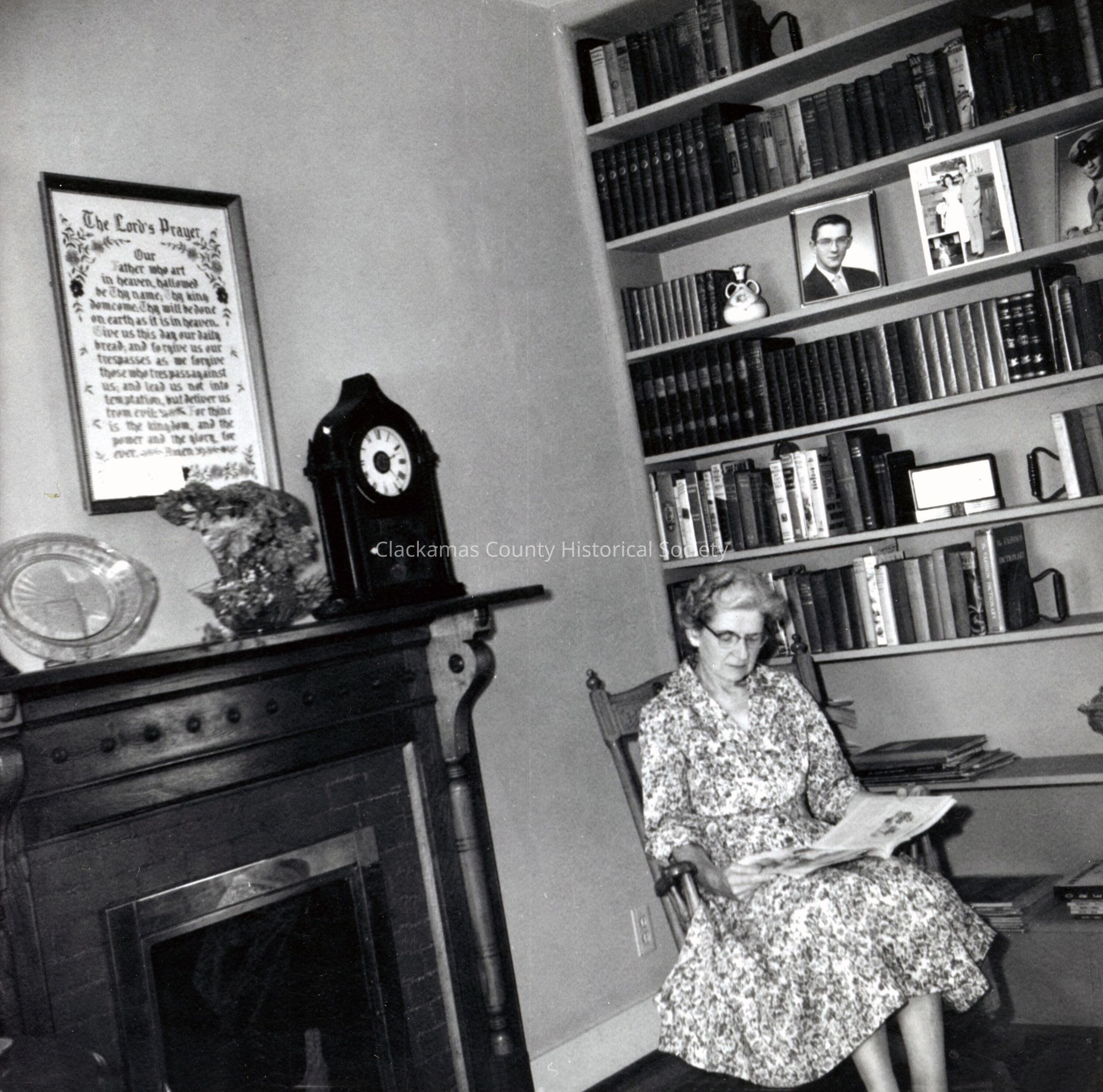 Jeanette and Art McDonald's home, interior. Woman in chair. 11th Street about Center St. September 1958.