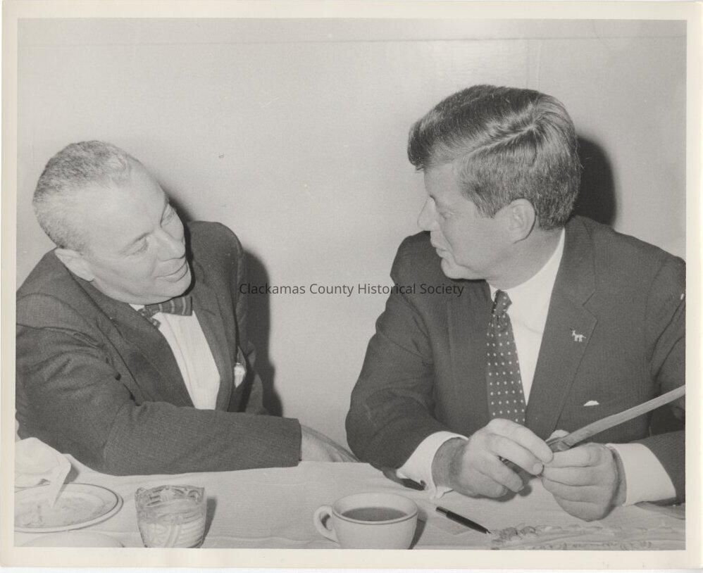 JFK with friend from South Pacific at banquet in Clackamas County.Made/Created