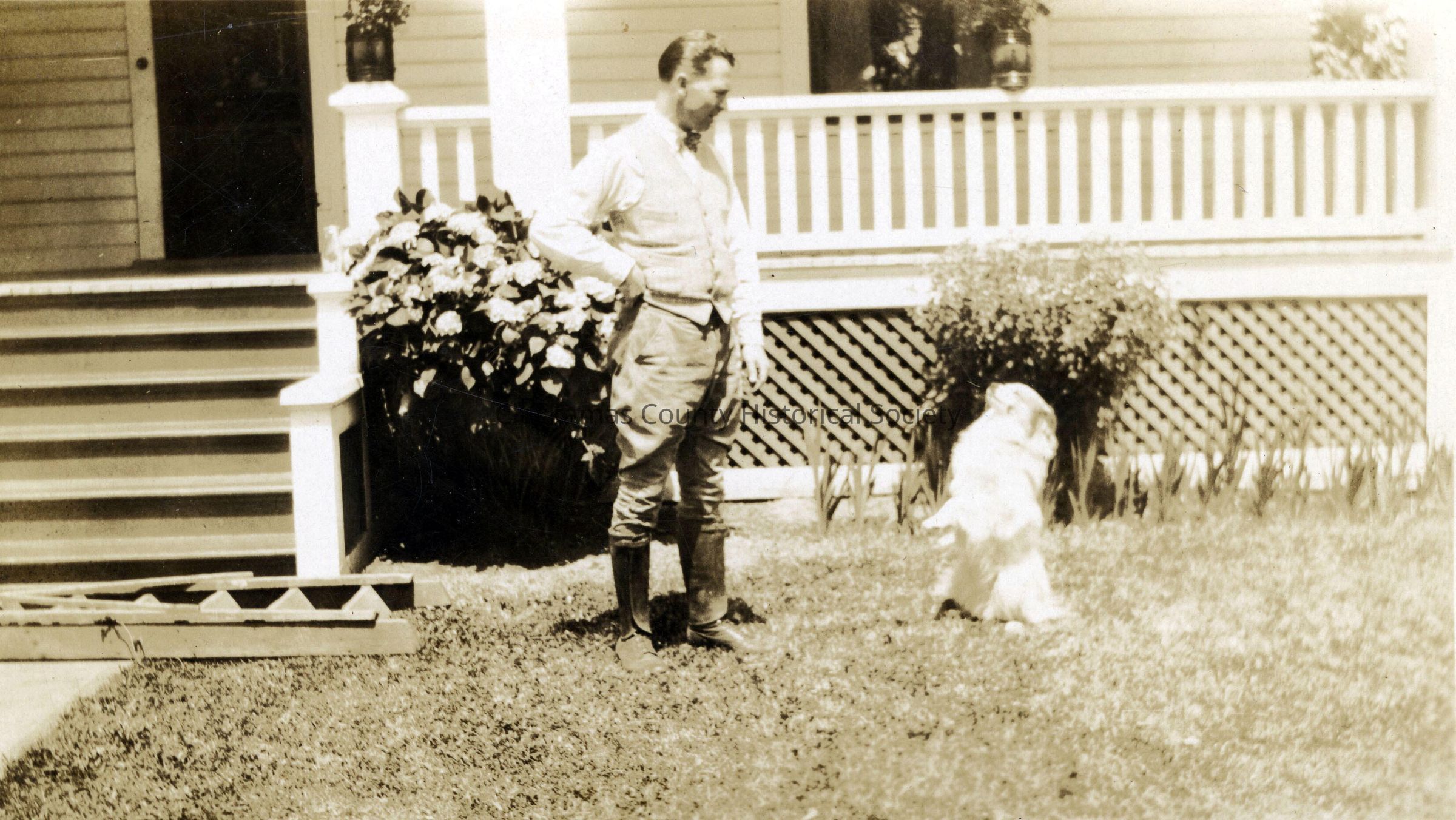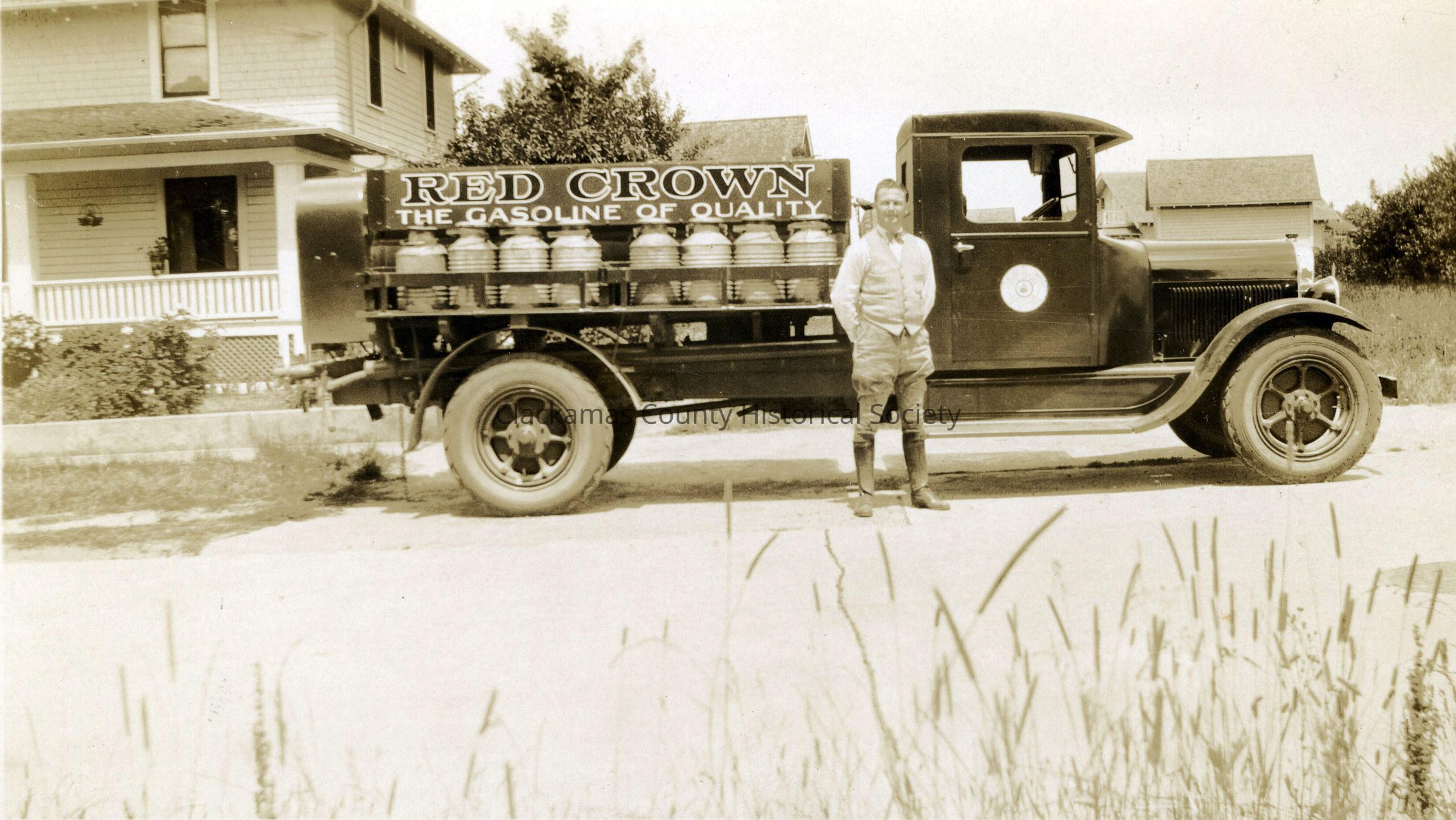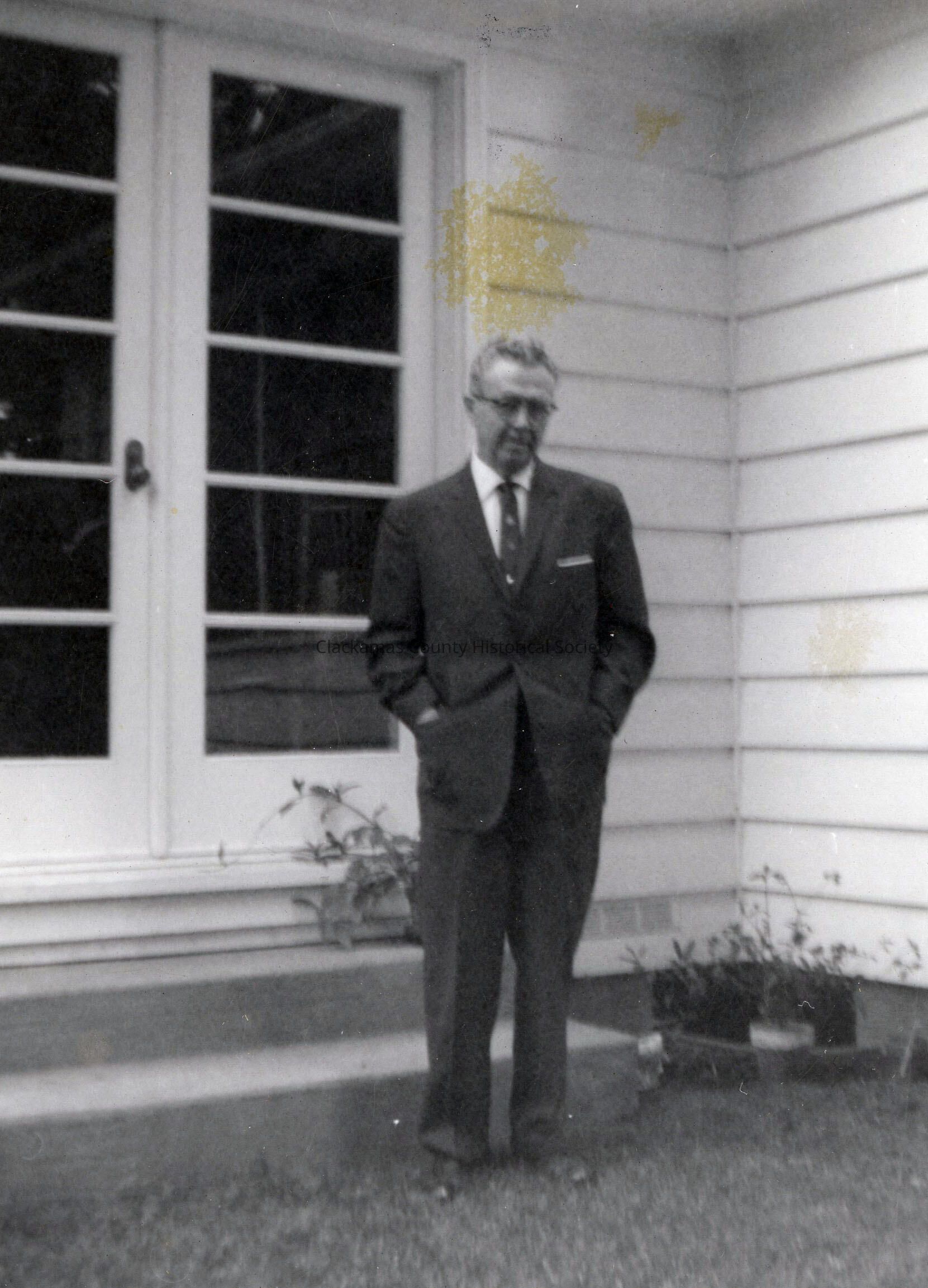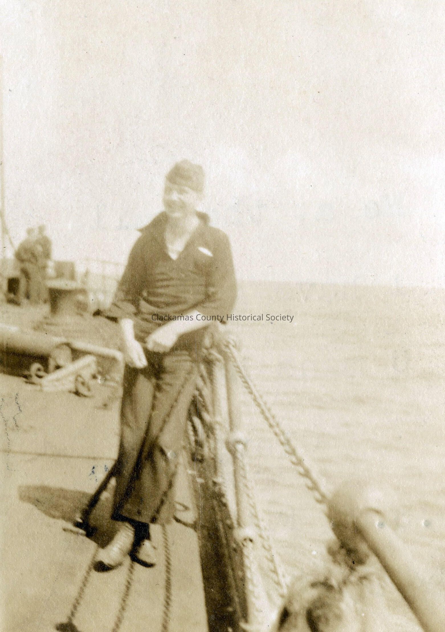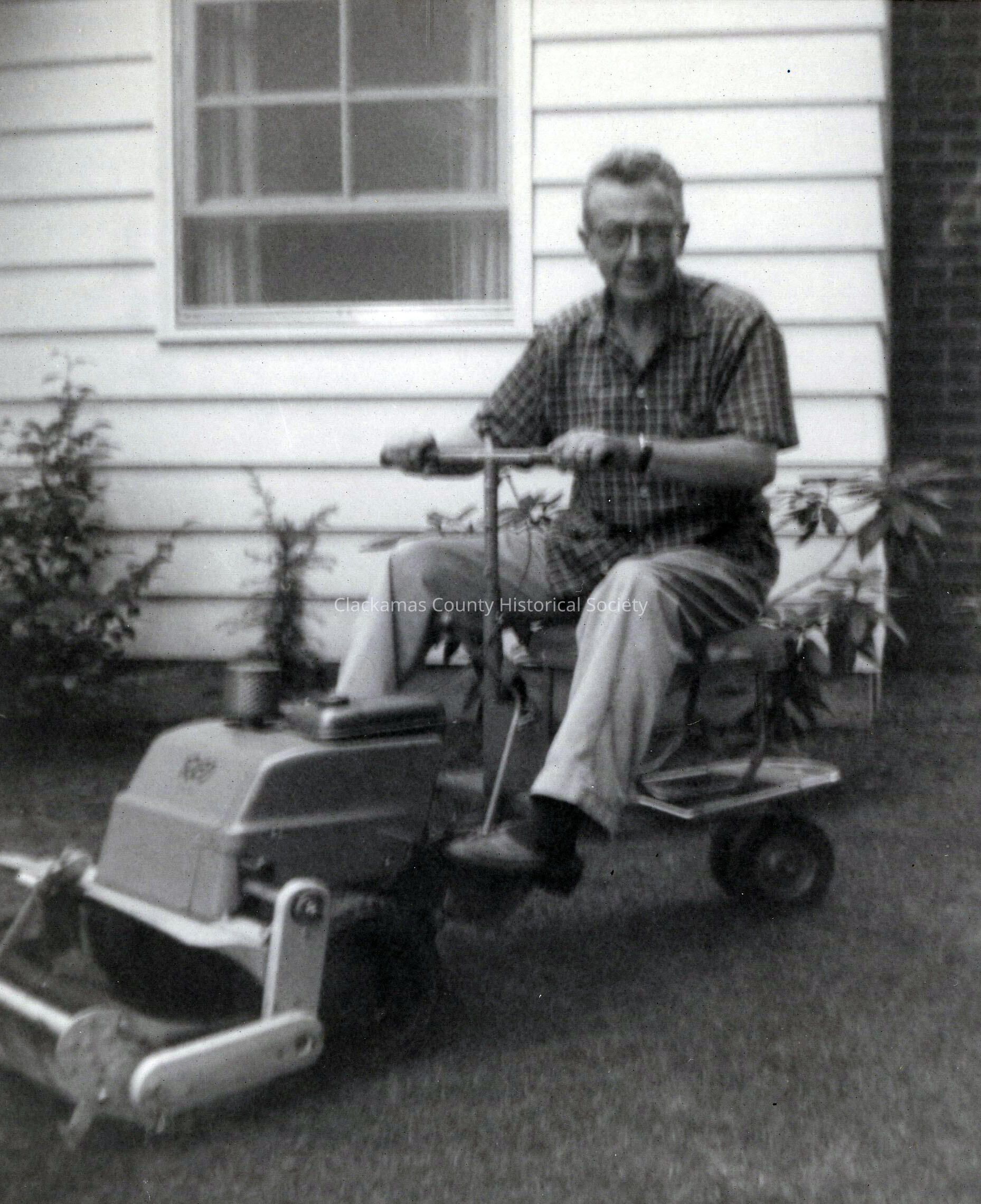Joe Miller Photos. 8 photos: 1) Joe as young boy; 2) Joe on ship; 3) Joe driving Red Crown Gas Truck; 4) at Mt. Angel with Roddy - in uniform of Standard Oil Truck Driver; 6) 1961 in suit; 7) August 1961 with lawn mower; and 8) October 1 1961. P-3101 through P-3107Made/Created