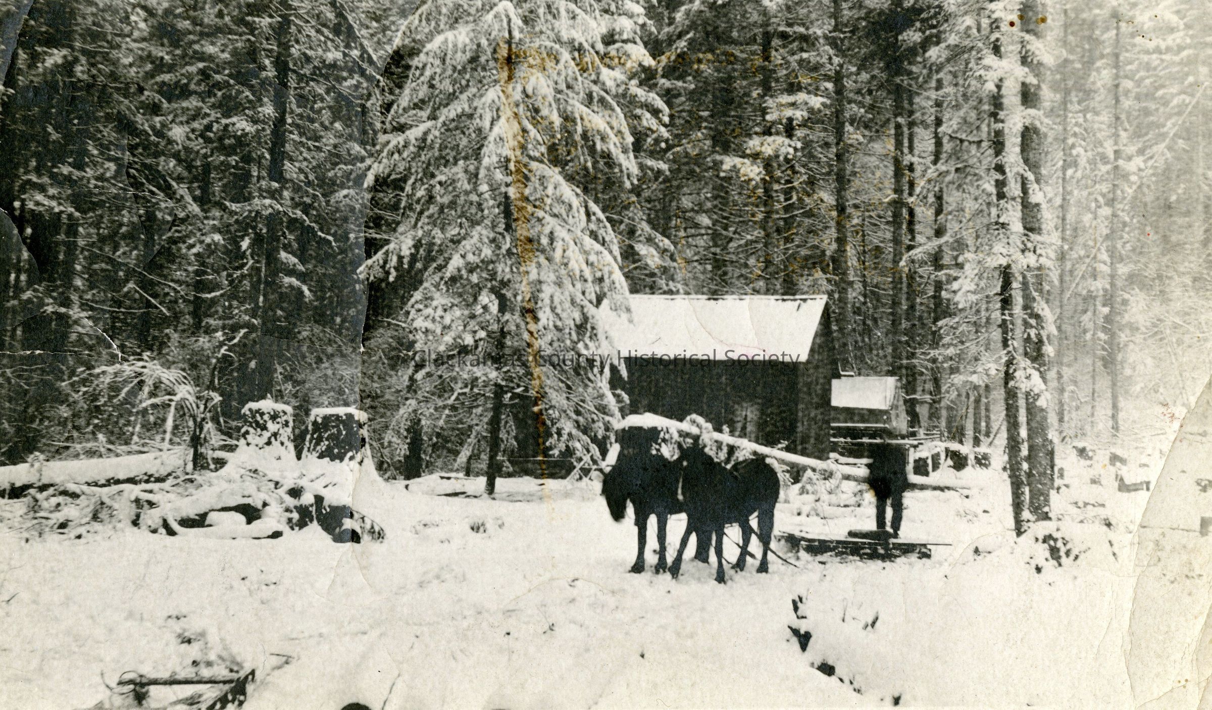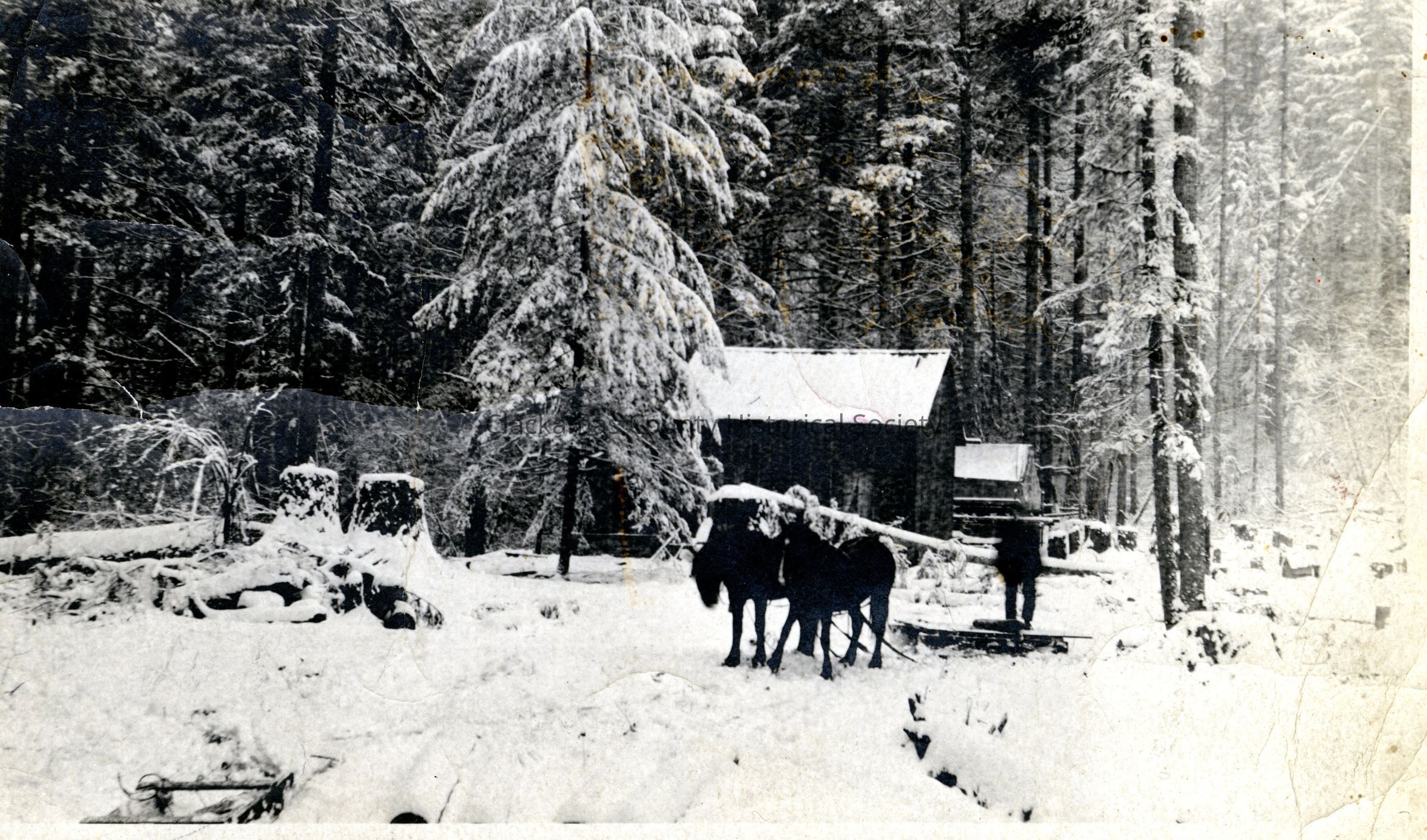 Kerr's Farm House in Redland Oregon Snow scene with horses. Home of Mahala Florence Kerr.