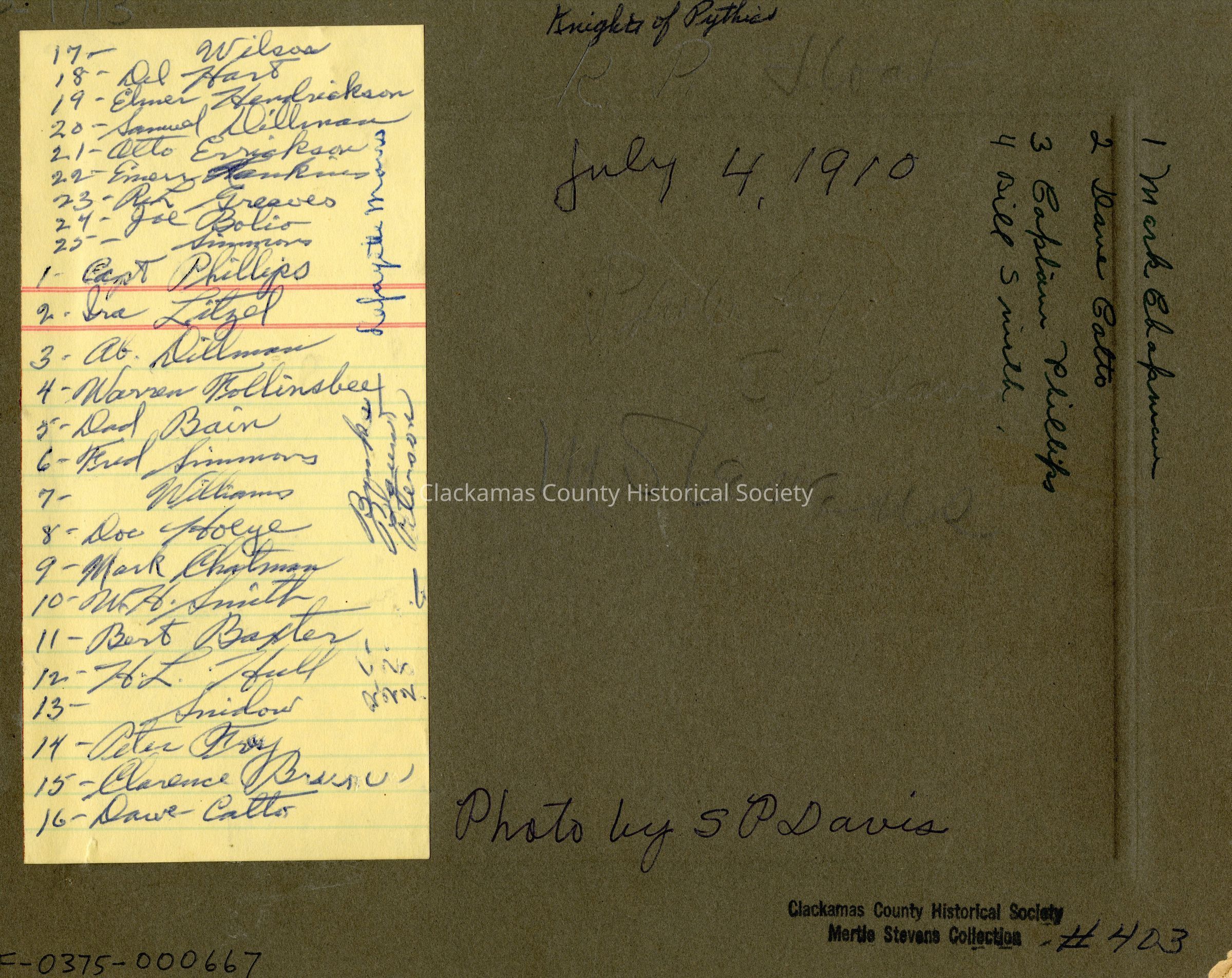 Knights of Pythias - July 4, 1910Entry/Object ID