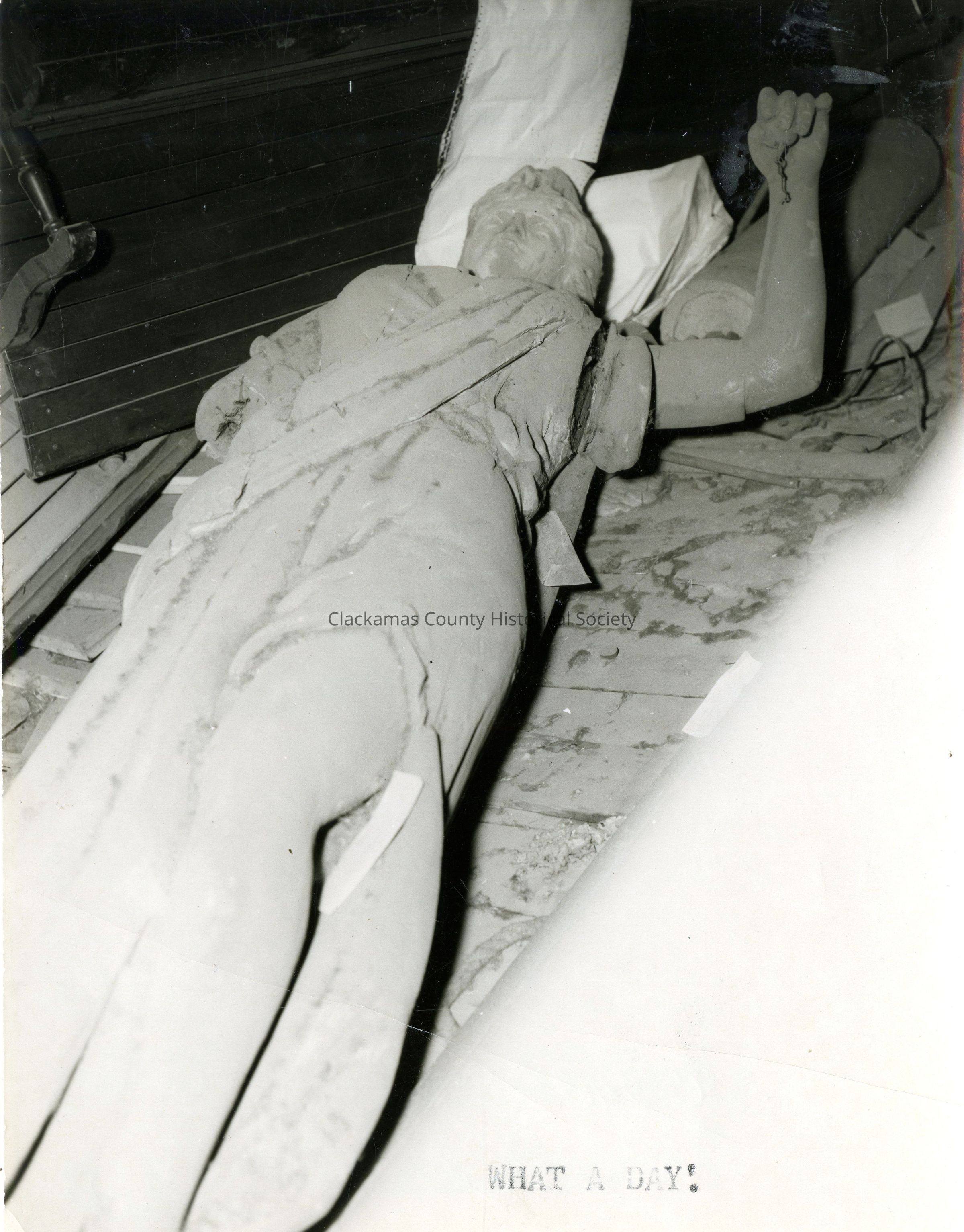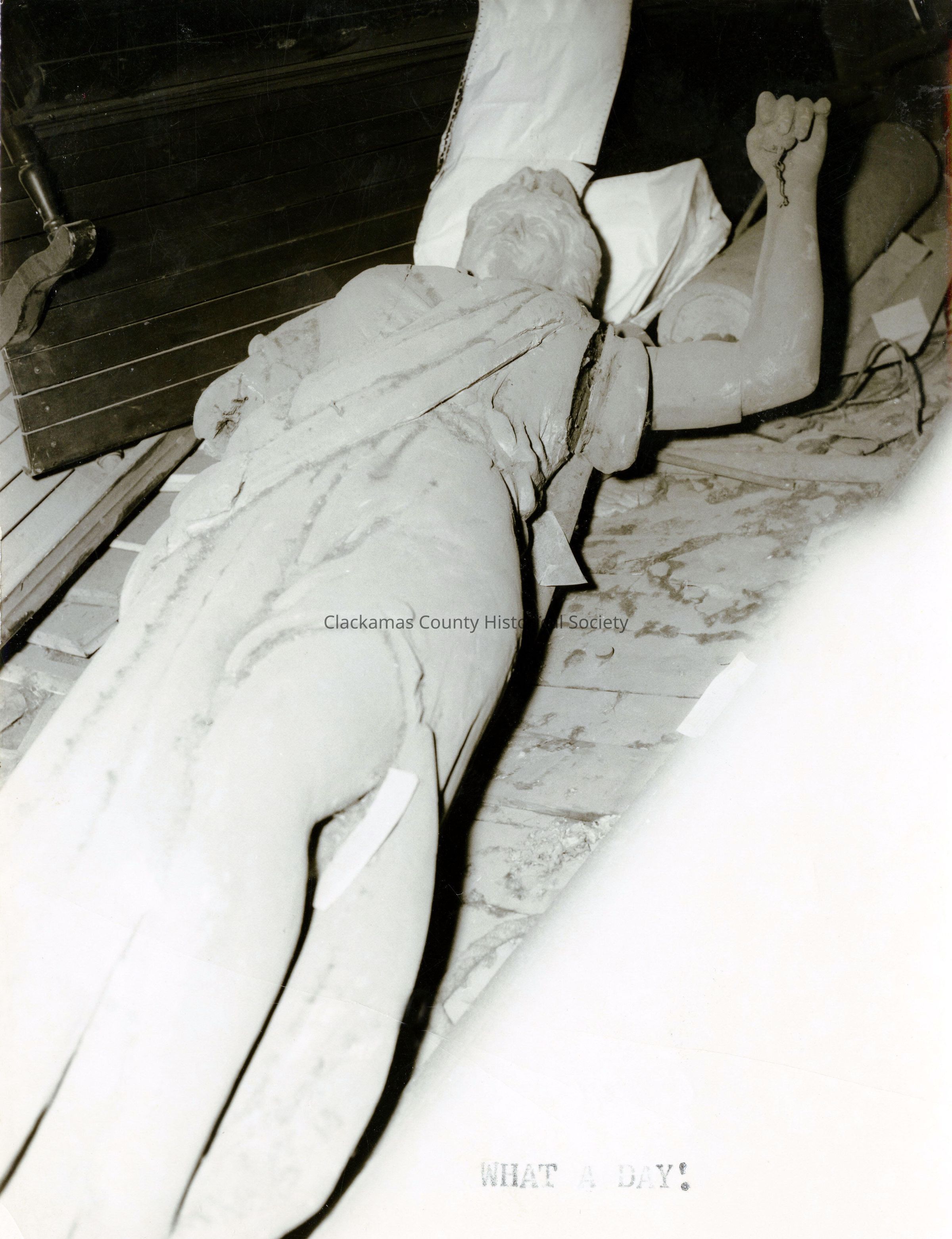 Lady Justice Statue from Oregon City Clackamas County Courthouse. (View #2) Note on back states: "1959."Made/Created