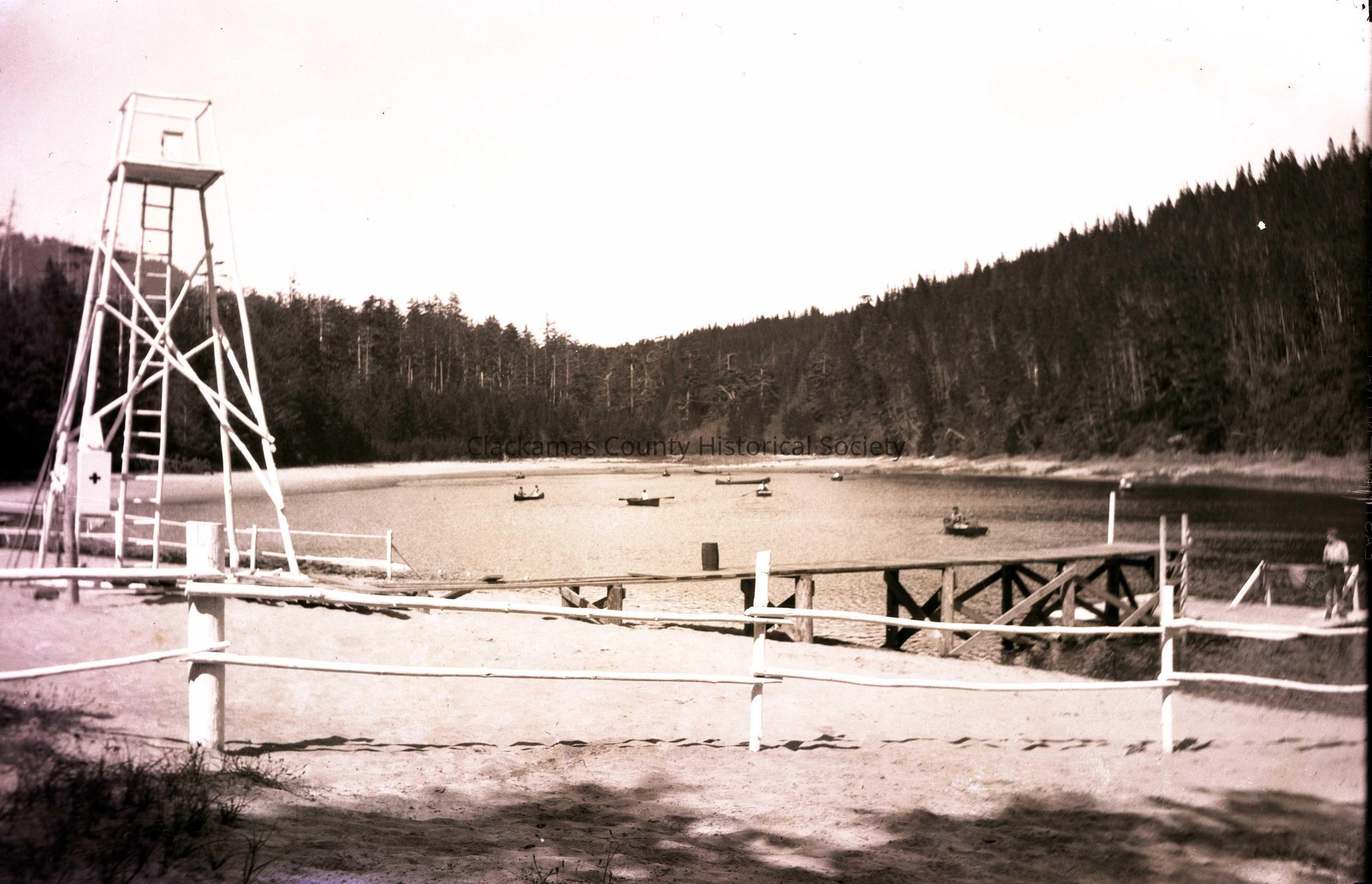 Lake and Guard Tower at Boy Scout Camp Merriwether, Oregon - NegativeEntry/Object ID