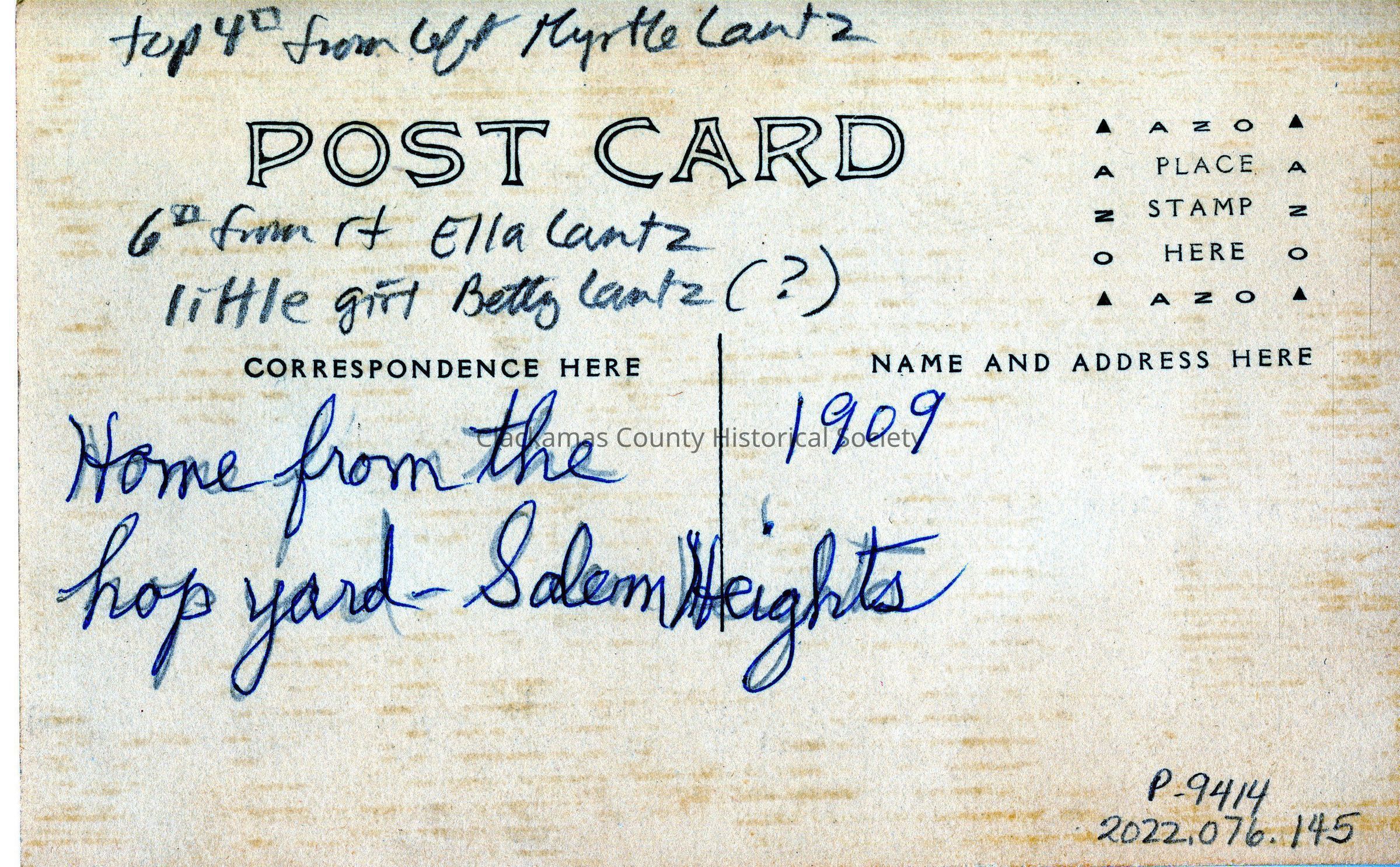 Top 4th from left - Myrtle Lantz; 6th from right - Ella Lantz; little girl Betty Lantz (?). Other people are unidentified.Other Names and Numbers