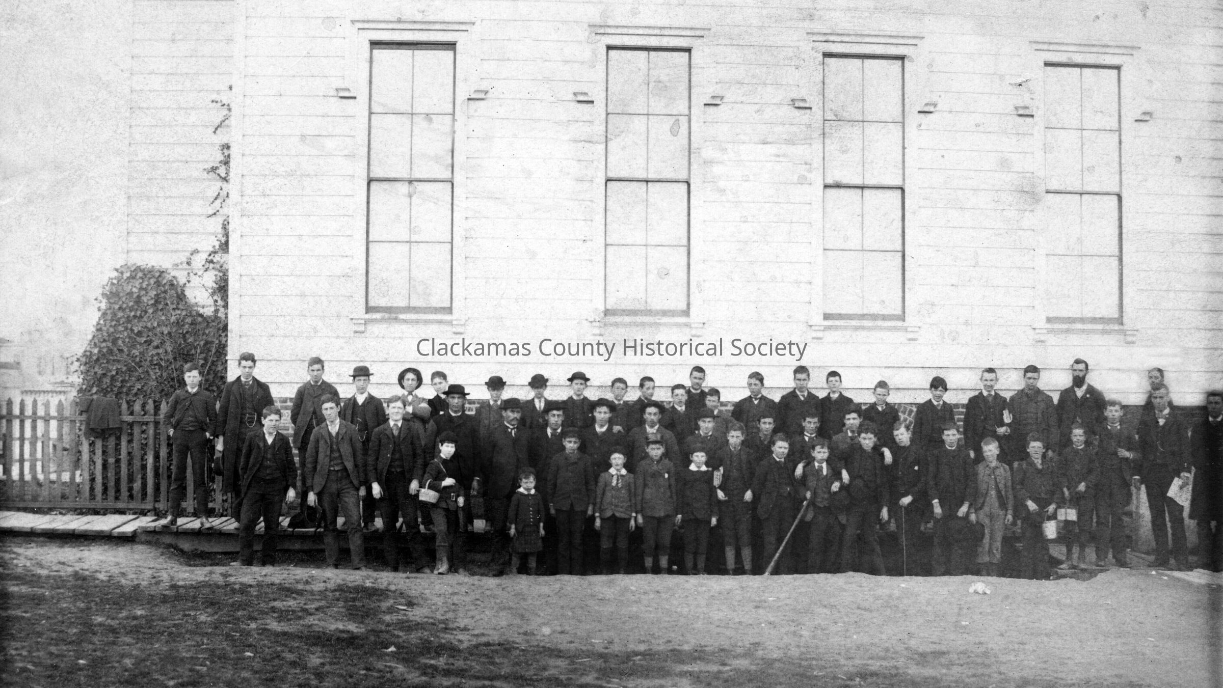Large Group of Boys in front of large building. Note on back of photo indicates the following people are in the photo but doesnt identify where: 1) W.B. Coley; 2) J.E. Hedges; and 3) Dr. Hill.Made/Created