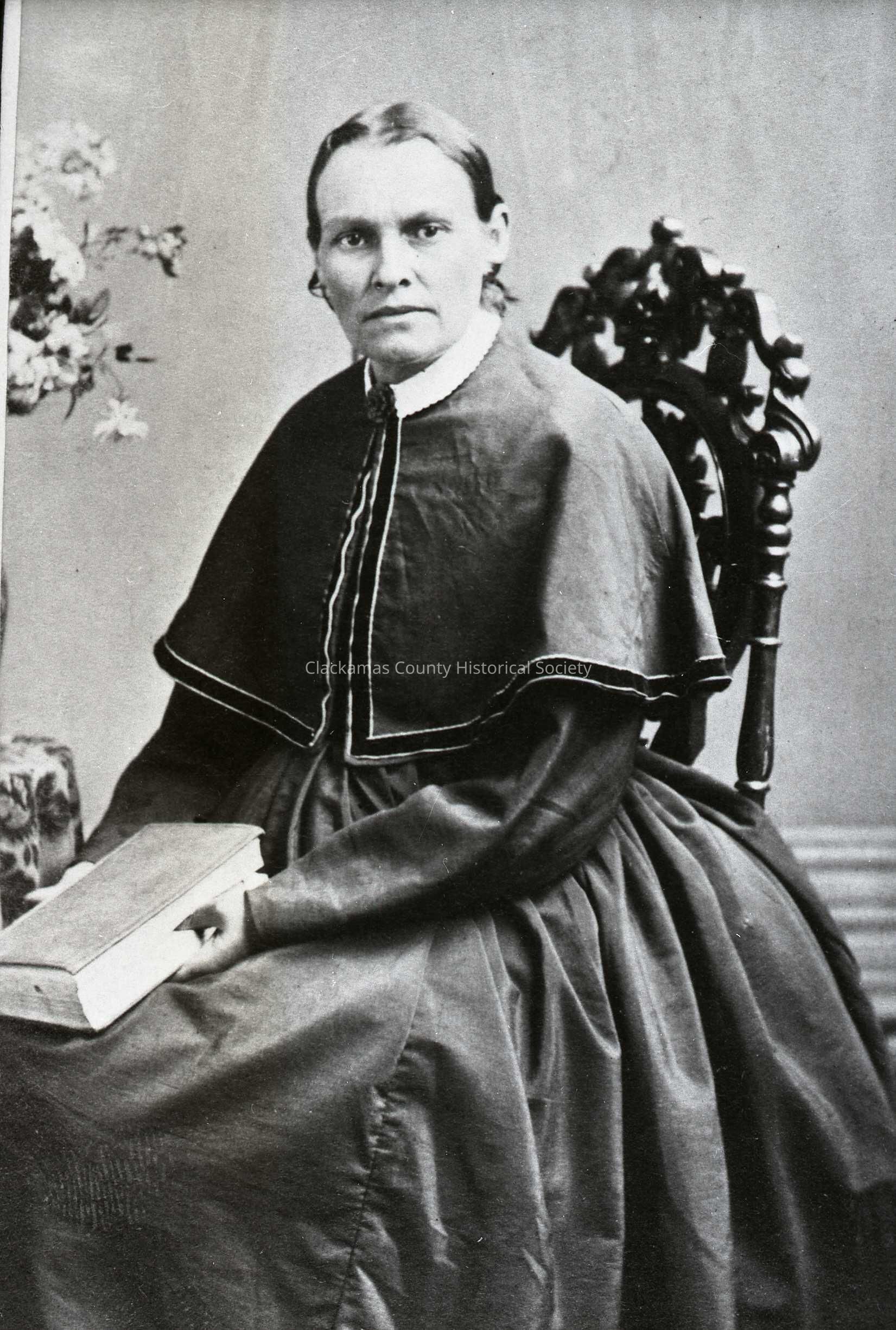 Mrs. Harrison Wright, 1847. Lavina Elizabeth Frazer, daughter of Mrs. John Mchaley, came to Oregon in 1843 and lived with her mother and stepfather on their Waldo Hills claim until she married Harrison Wright in 1847. They settled along the Molalla River near the present Liberal.Made/Created