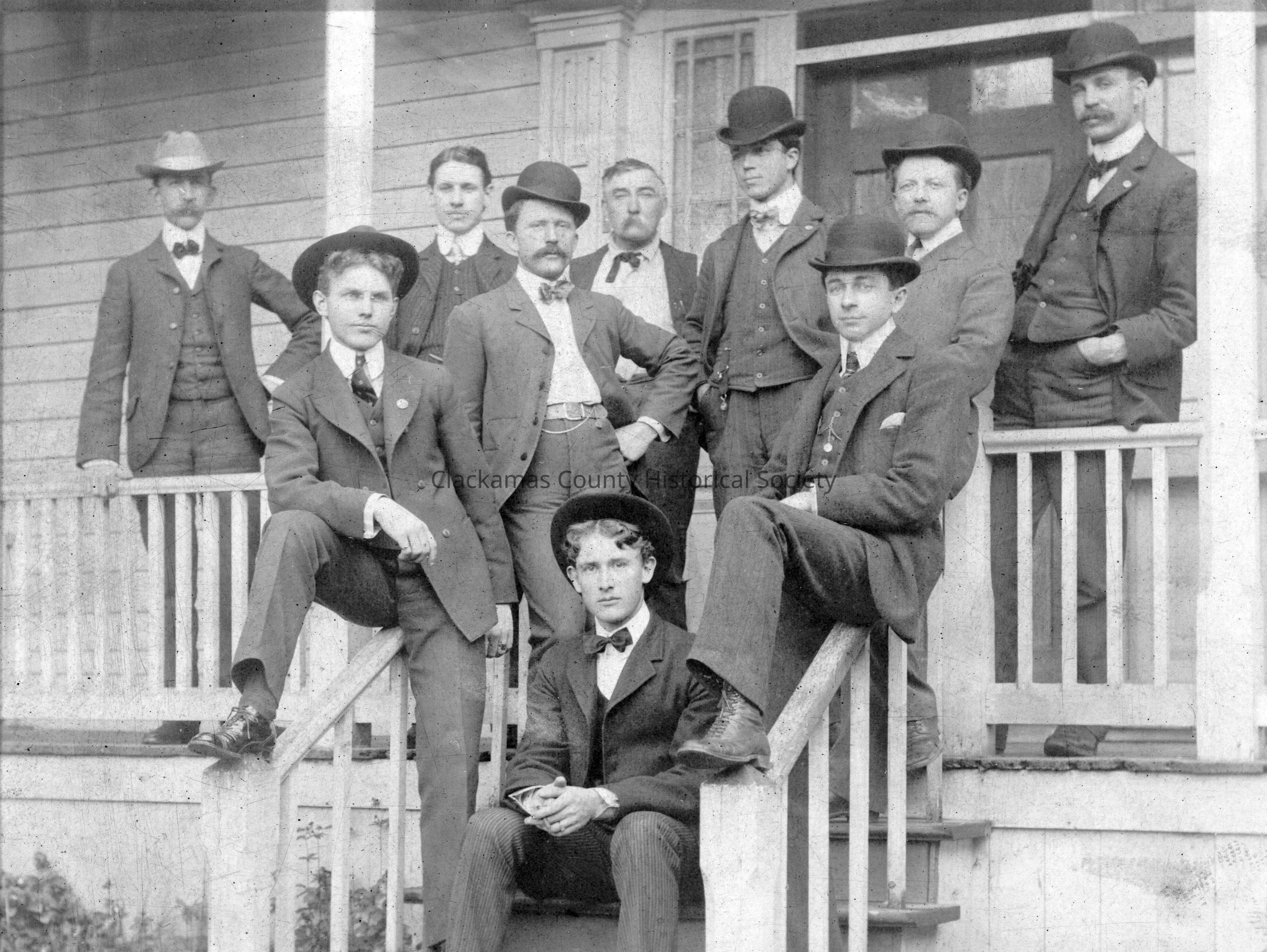 Lew (Lou) Adams, on left bannister. Other names listed (but not identified by placement) are Ed Rapp, Vic Conroy, W.W.H. Sampson, Dan Geisler Ted Osmand, Jim Rait and Loy Stipp.Made/Created