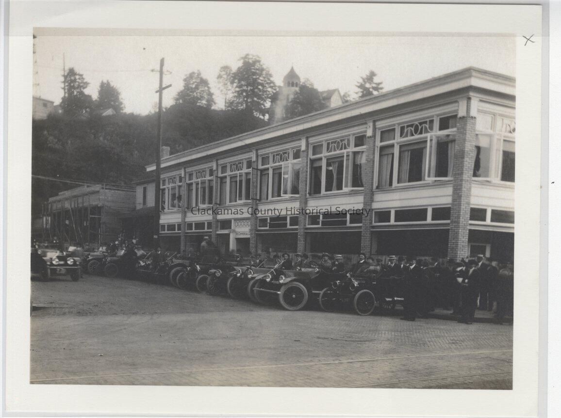 Line of cars in front of building Oregon City
