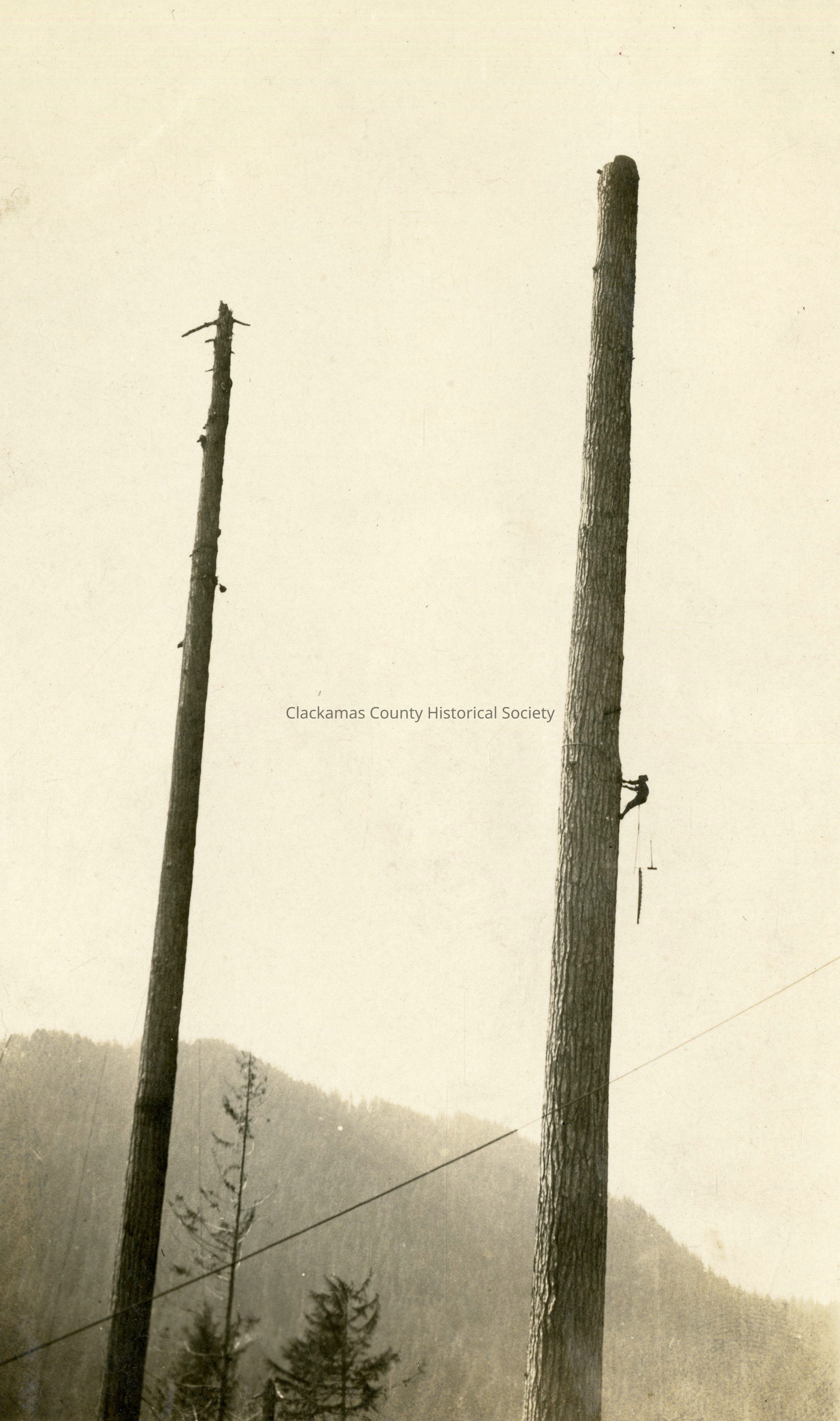Logger Climbing Tall Limbless Tree