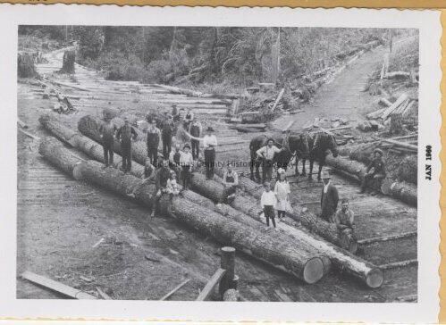 Mt. Hood Nelson & Jarl Sawmill near Sandy logging with horses 1910 With negitive
