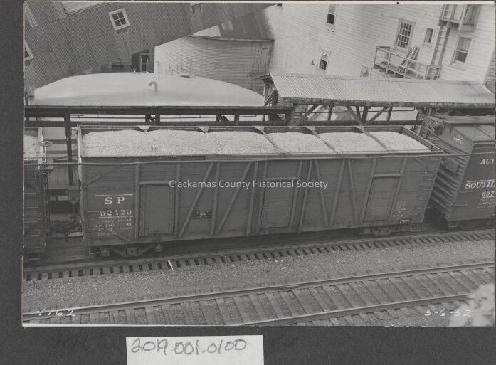 Rail cars of chips at the mill 1952