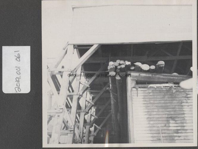 Logs stacked inside a building