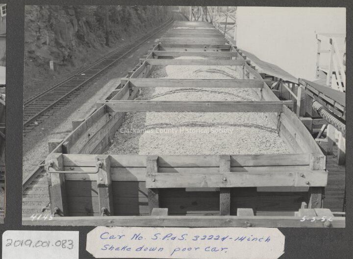 Railcars with wood chips Car No. Sp&S 32224 14 inch shake down poor car 1952