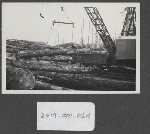 Crane in a yard of logs