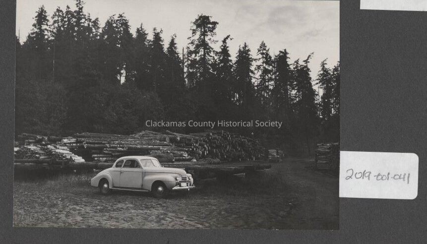 Stack of Logs and parked car