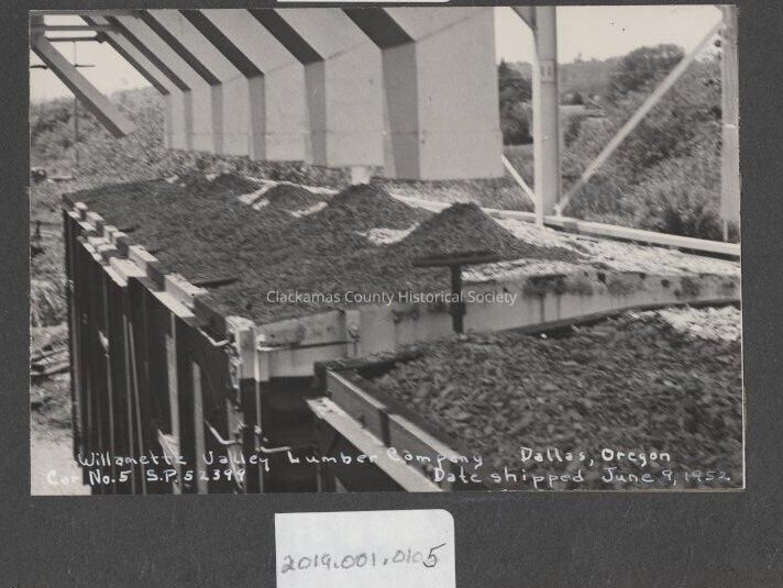 wood chips laying inside the mill Willamette Valley Lumber 1952