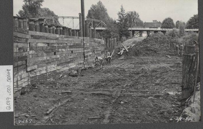 Men working on wooden wall 1952