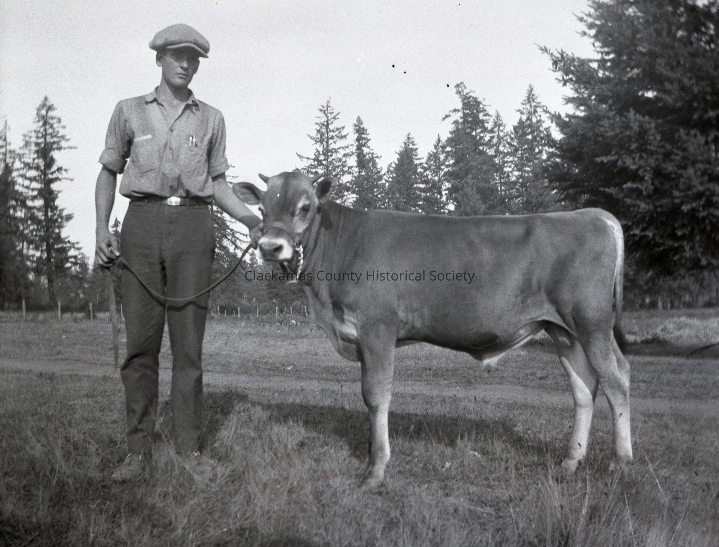 Man with calf on halter in field. (envelope unmarked)Made/Created