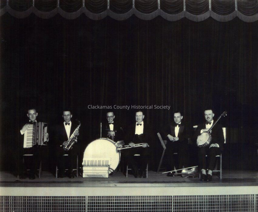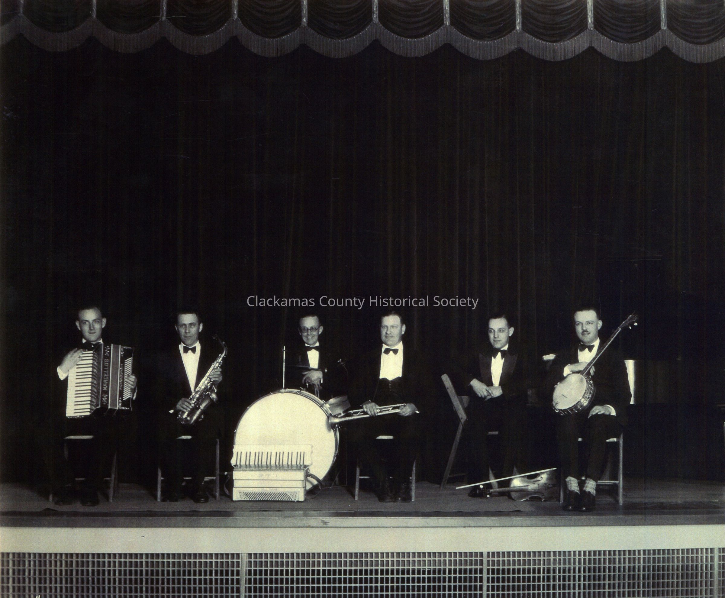 Photo of an unknown musical group except for Marcellus Martin on accordion.