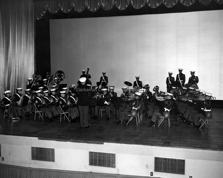 Marine Corps Band. On a stage.