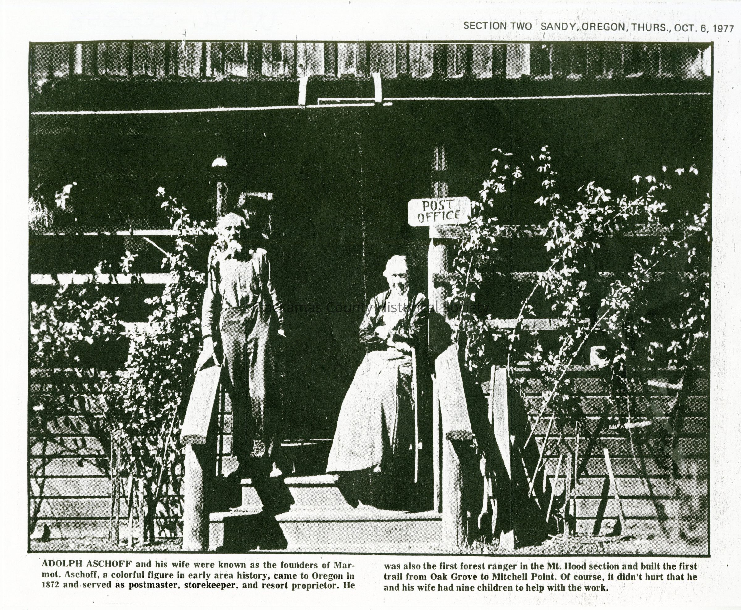 Marmot Post Office Adolph Aschoff Founder U.1426.003358 Also included is a photocopy of a Newspaper Article.