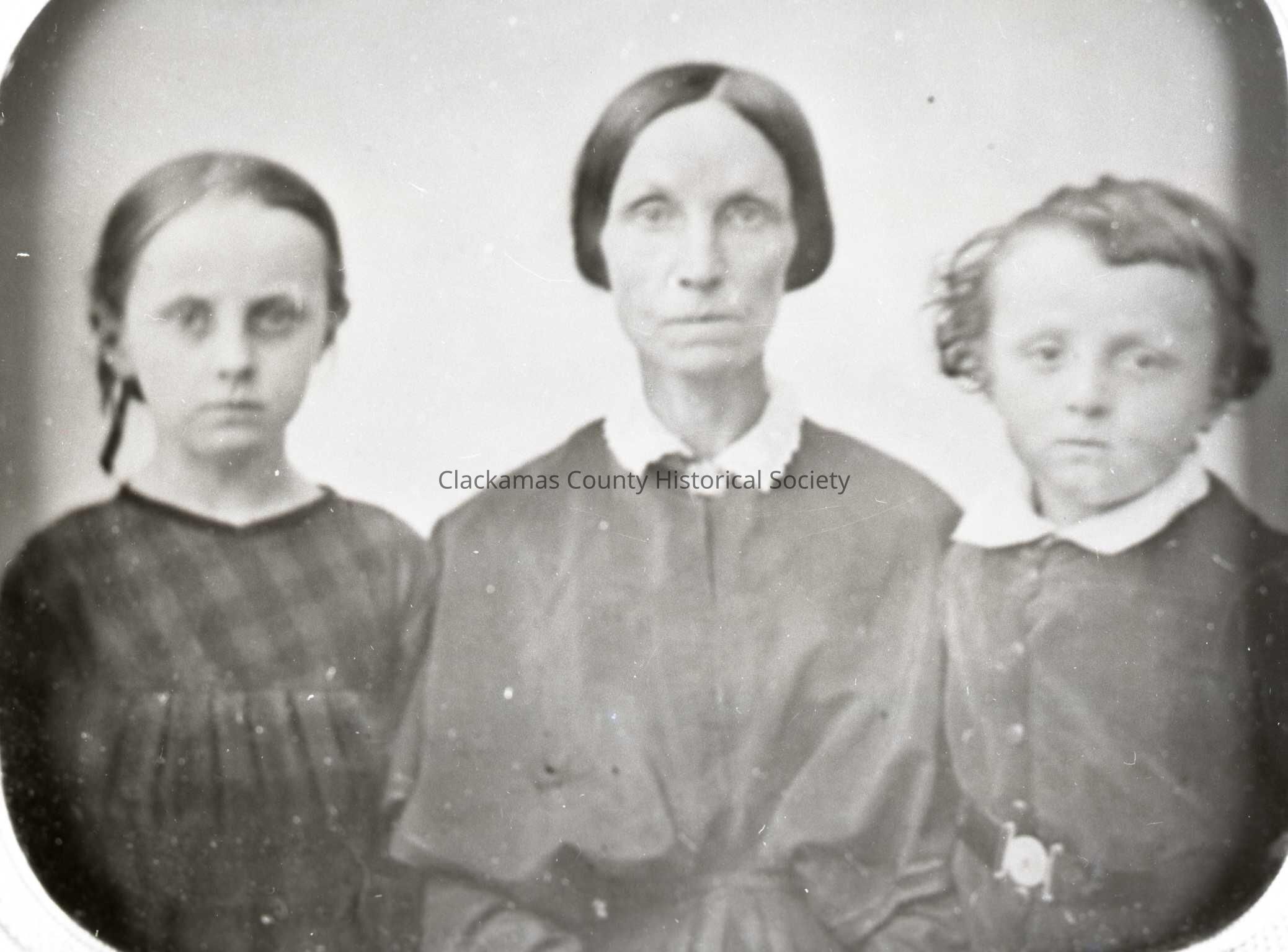 (L-R): 1) Mary Elizabeth Crawford (daughter); 2) Mrs. Medorem (Adaline) Crawford (mother): and 3) John Morrison Crawford (son).Made/Created