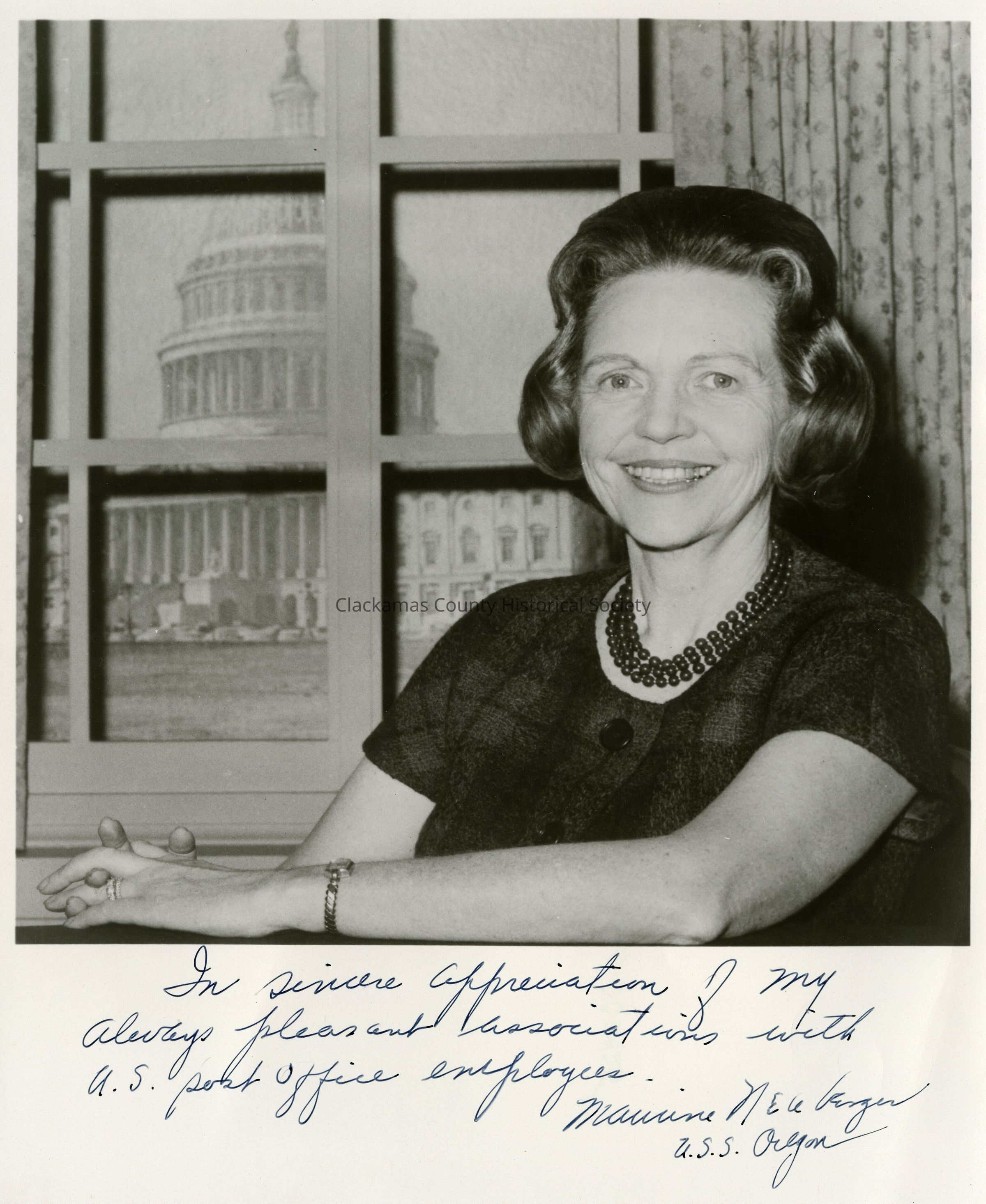 Maurine Newberger, U.S. Senator. Note on back: "In sincere appreciation of my always pleasant association with U.S. Post Office employees."Made/Created