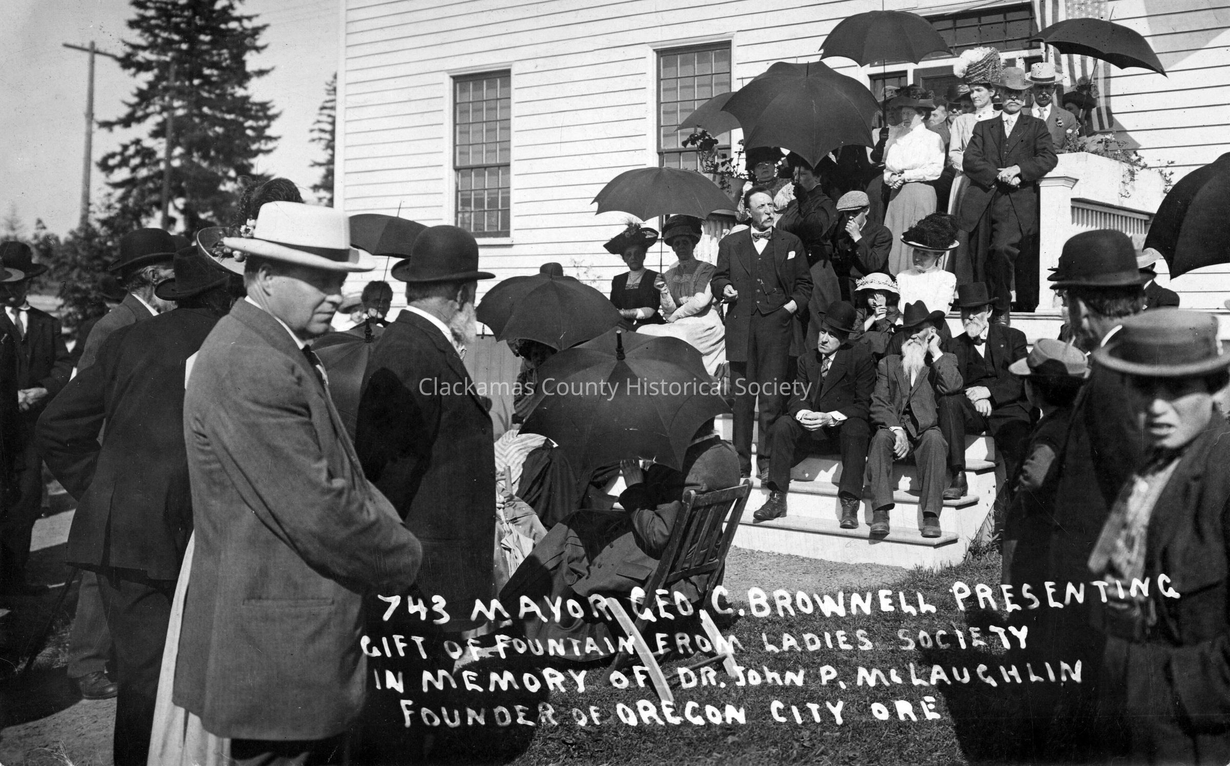 Mayor G. C. Brownell presenting McLoughlin Fountain, 1911.Made/Created