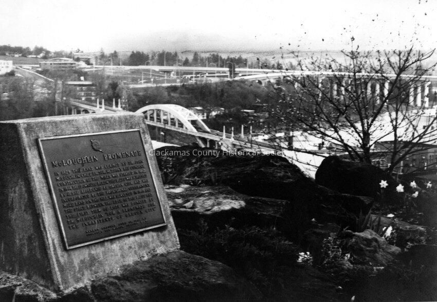 McLoughlin Promenade Marker. Erected June 13, 1964. Arch bridge and I-205 in background.Made/Created