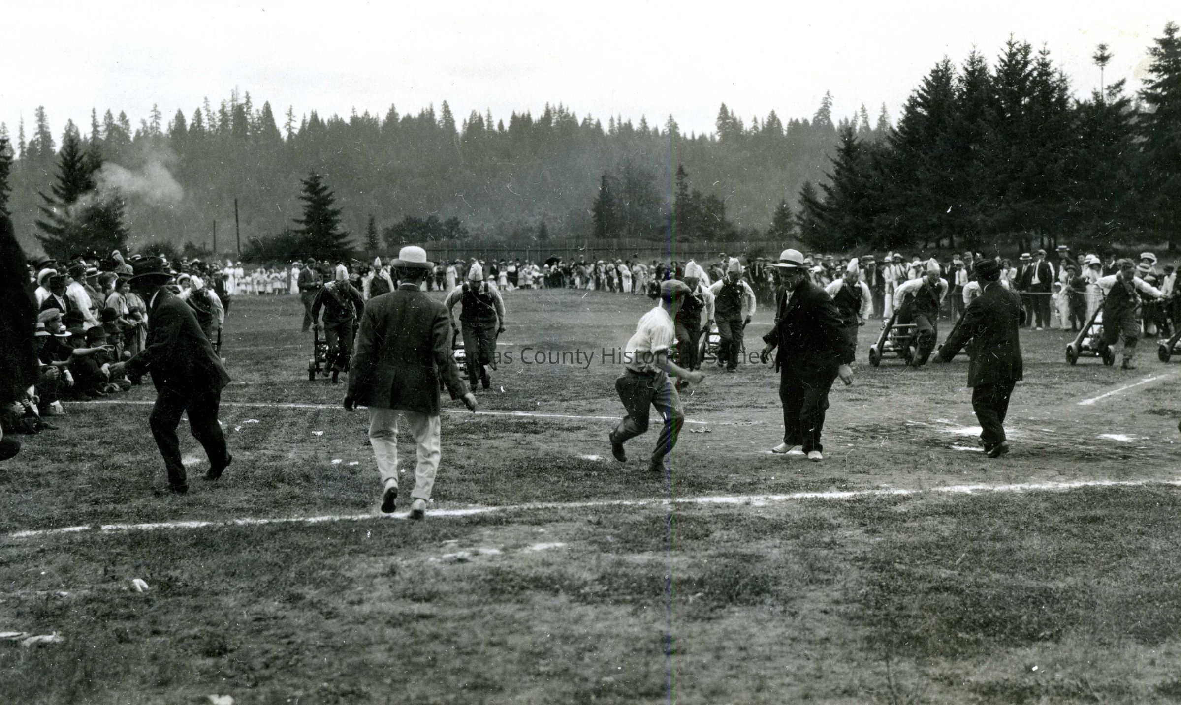 Gladstone Park 4th of July Celebration,1914. Men's Cart Relay.Made/Created