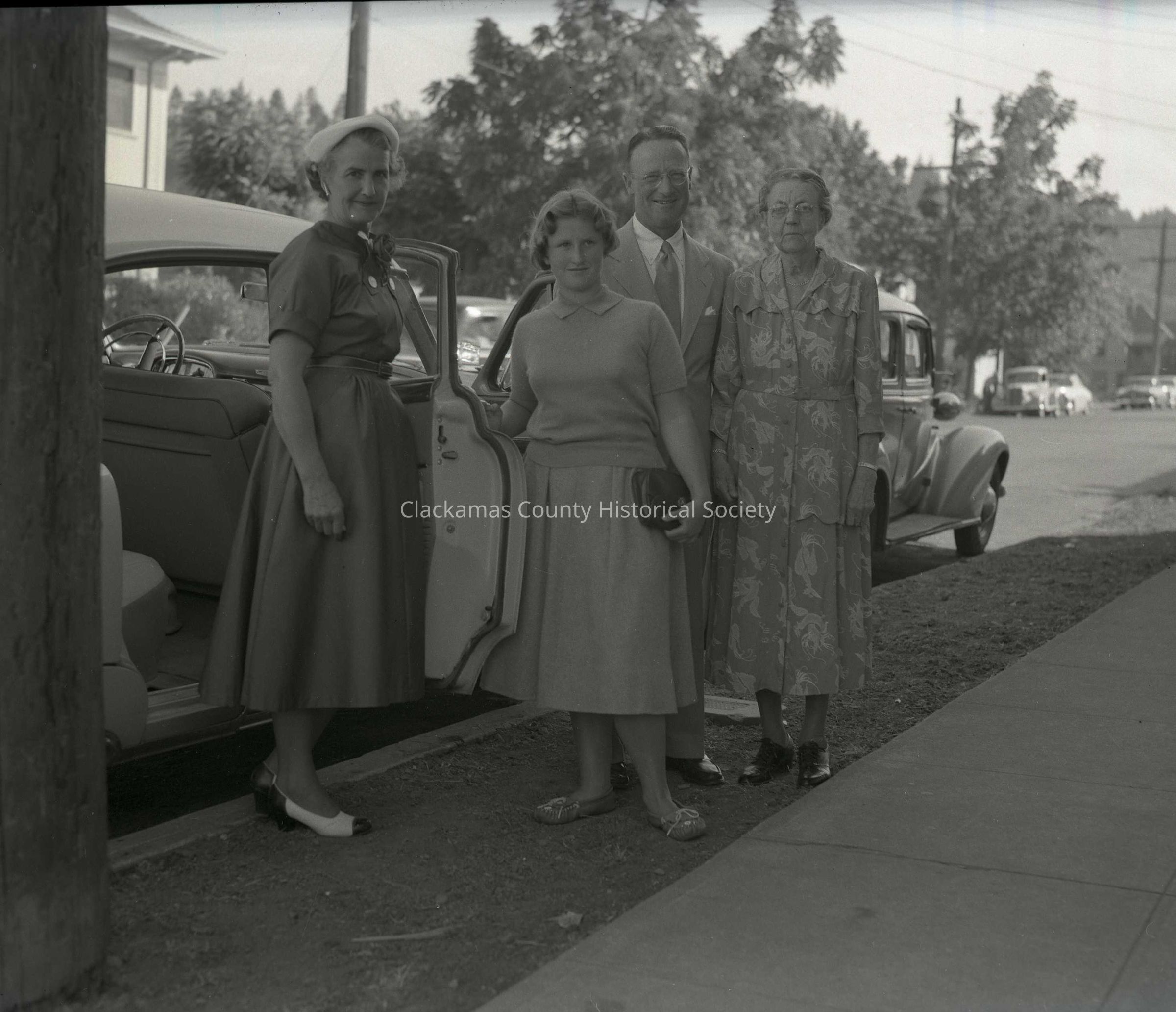 Mertie Stevens with nephew, Henry Stevens, his wife, Stella and daughter, Sally in front of Guest House.Made/Created